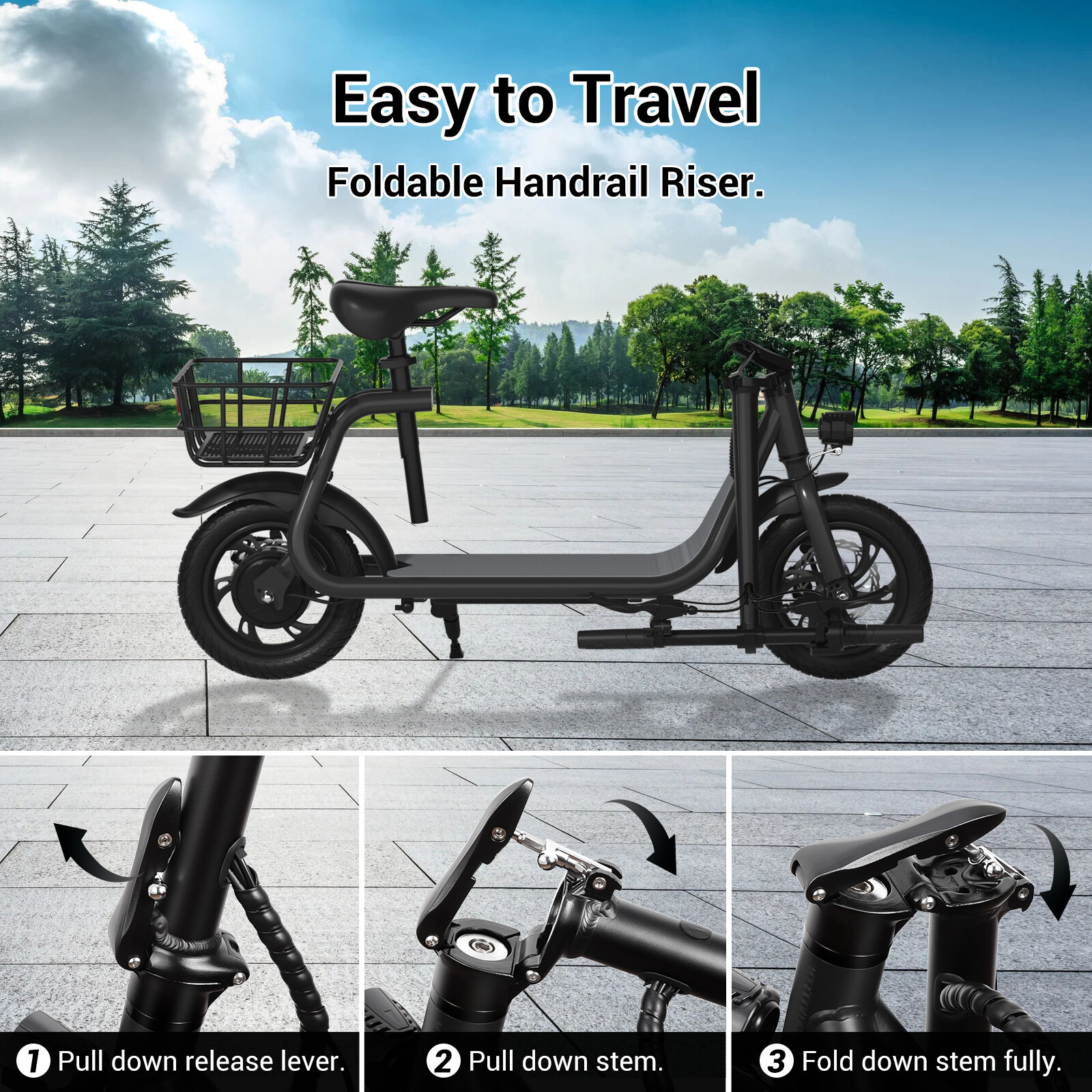 450W Sports Electric Scooter Adult with Seat Electric Moped Commuter E-Scooter