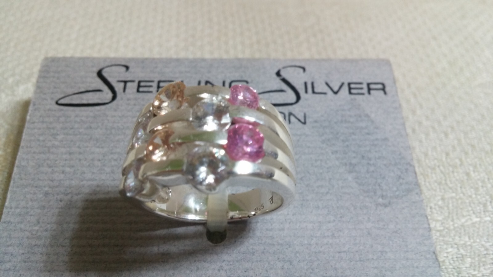 как выглядит Vintage 925 Sterling Silver Filigree Clear Pink Crystal Inset Ring Size 6.5 фото