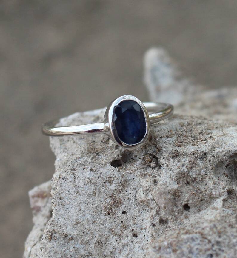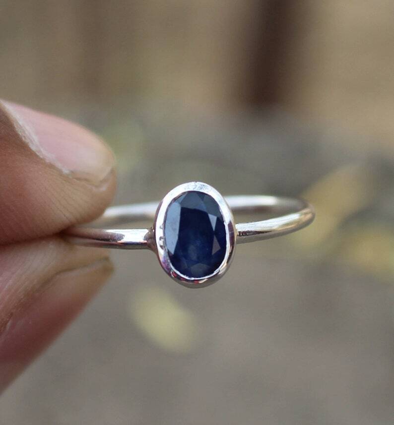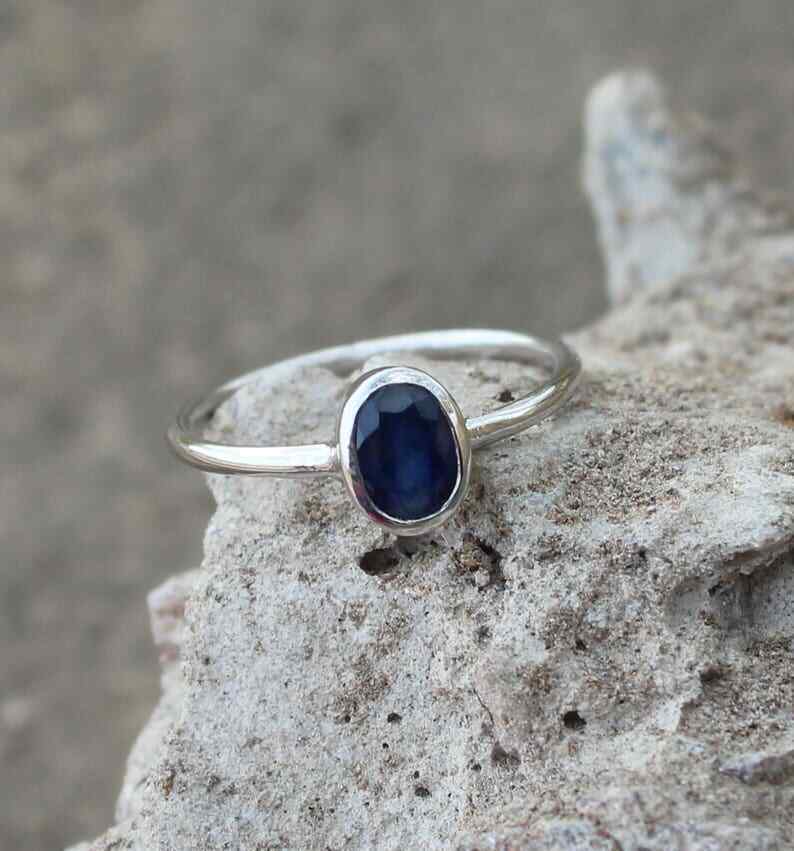 Natural Blue Sapphire Gemstone Simple Promise Ring valentine day gifts