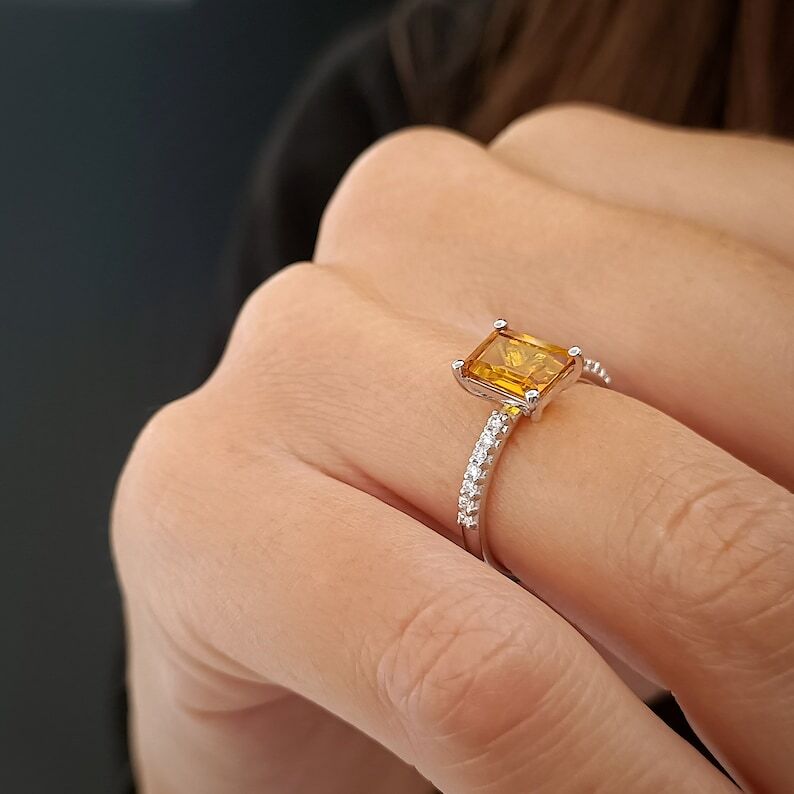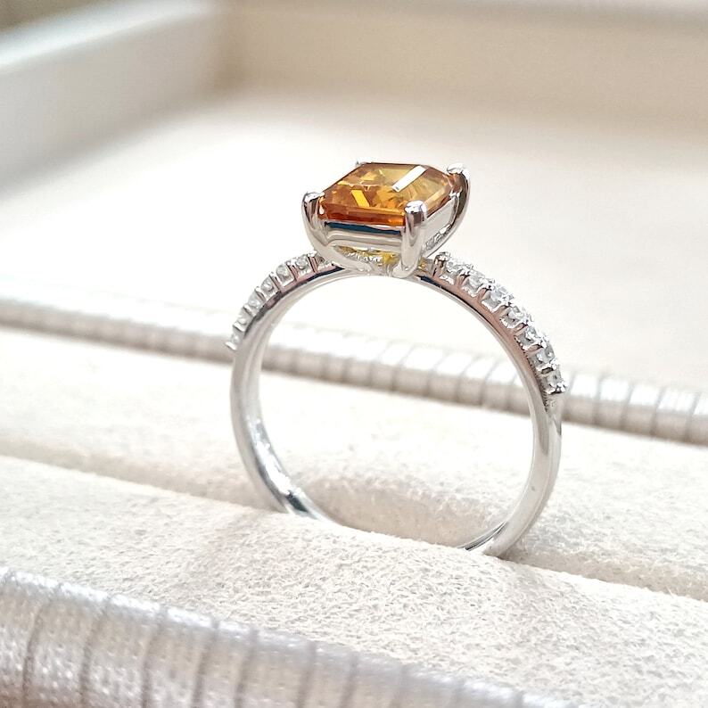 Natural Citrine Diamonds Gemstone Engagement Ring, valentine day gifts