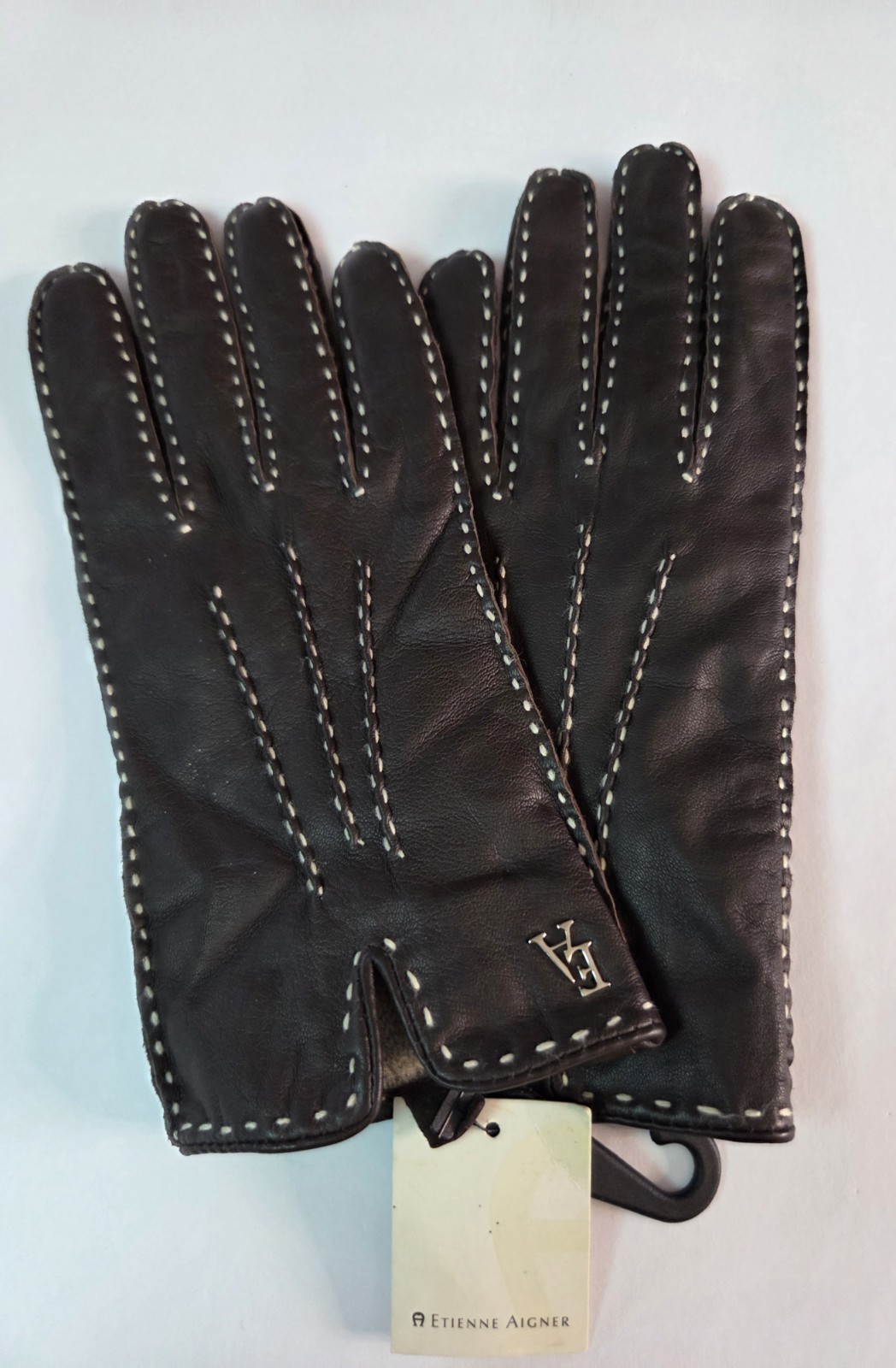 как выглядит Etienne Aigner EA LOGO White Stitched Trim Womens Medium Leather Gloves фото