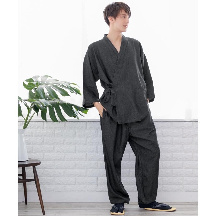 как выглядит Kimono Denim Samue Traditional Japanese Mens Work Ware Indigo Black Blue NEW фото