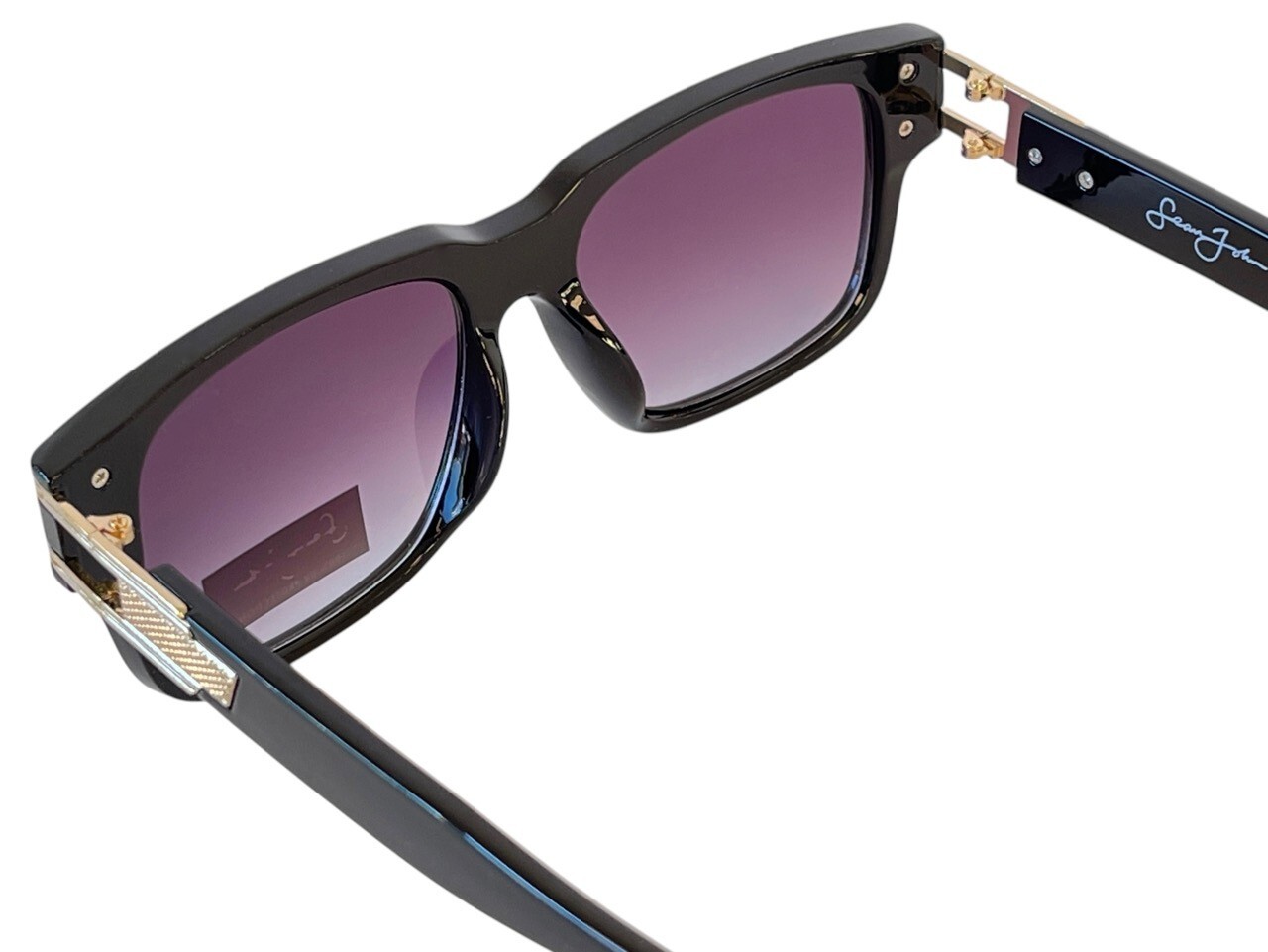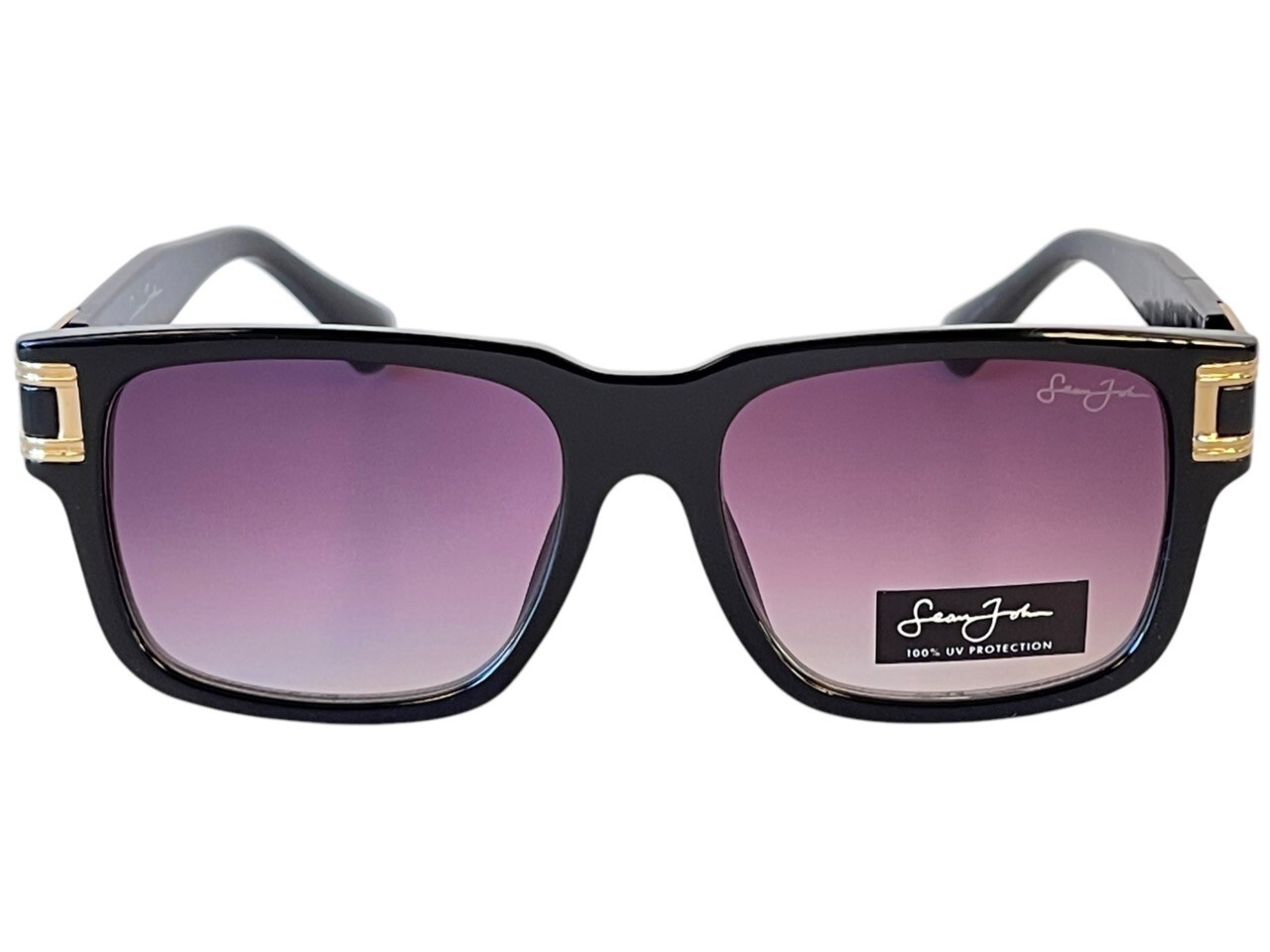 Sean John Glossy Black Gold Designer Sunglasses Cool Gradient Tint UV Lenses NWT