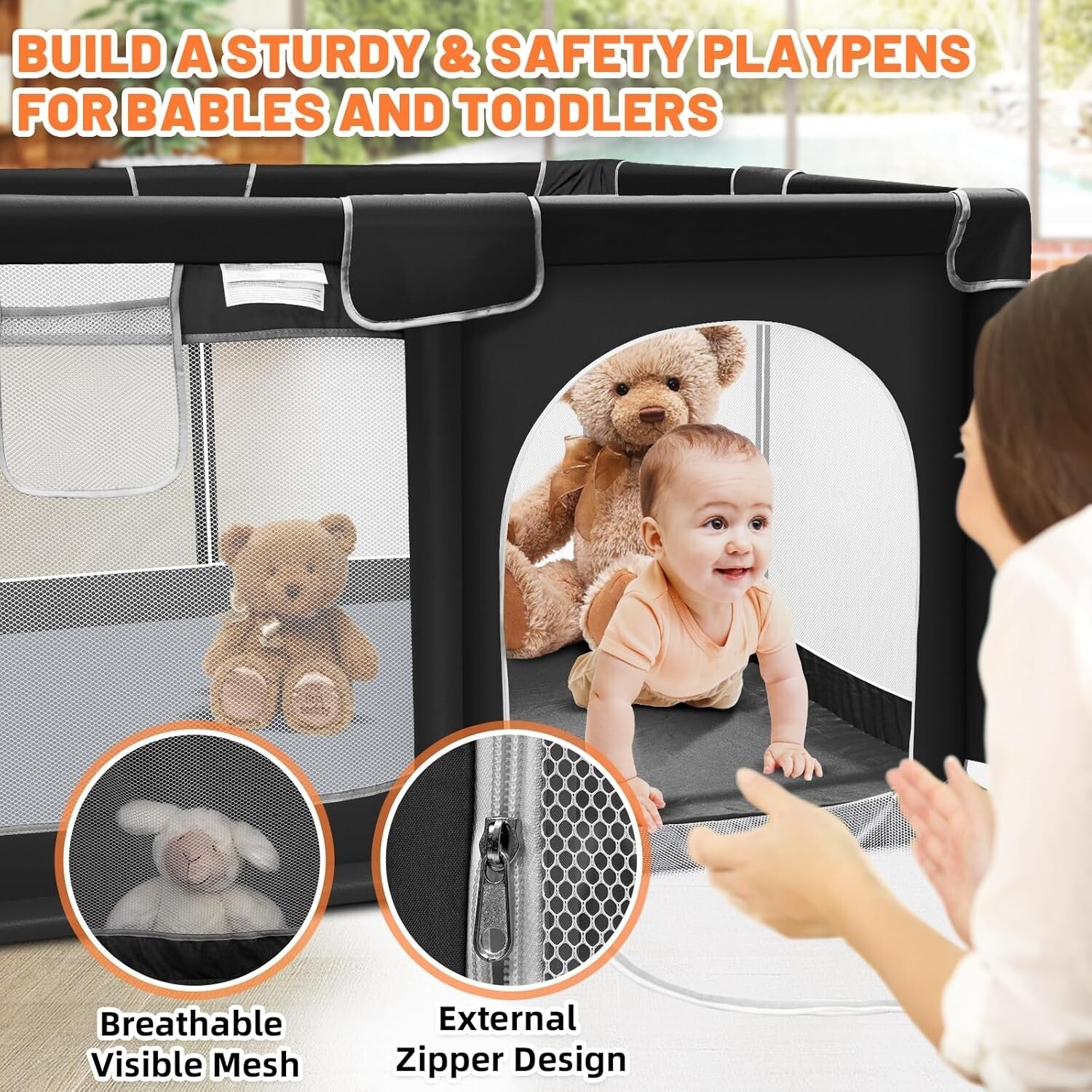 Corralito Para Bebes Portatil Para Interiores Y Exteriores Color Negro NEW US..