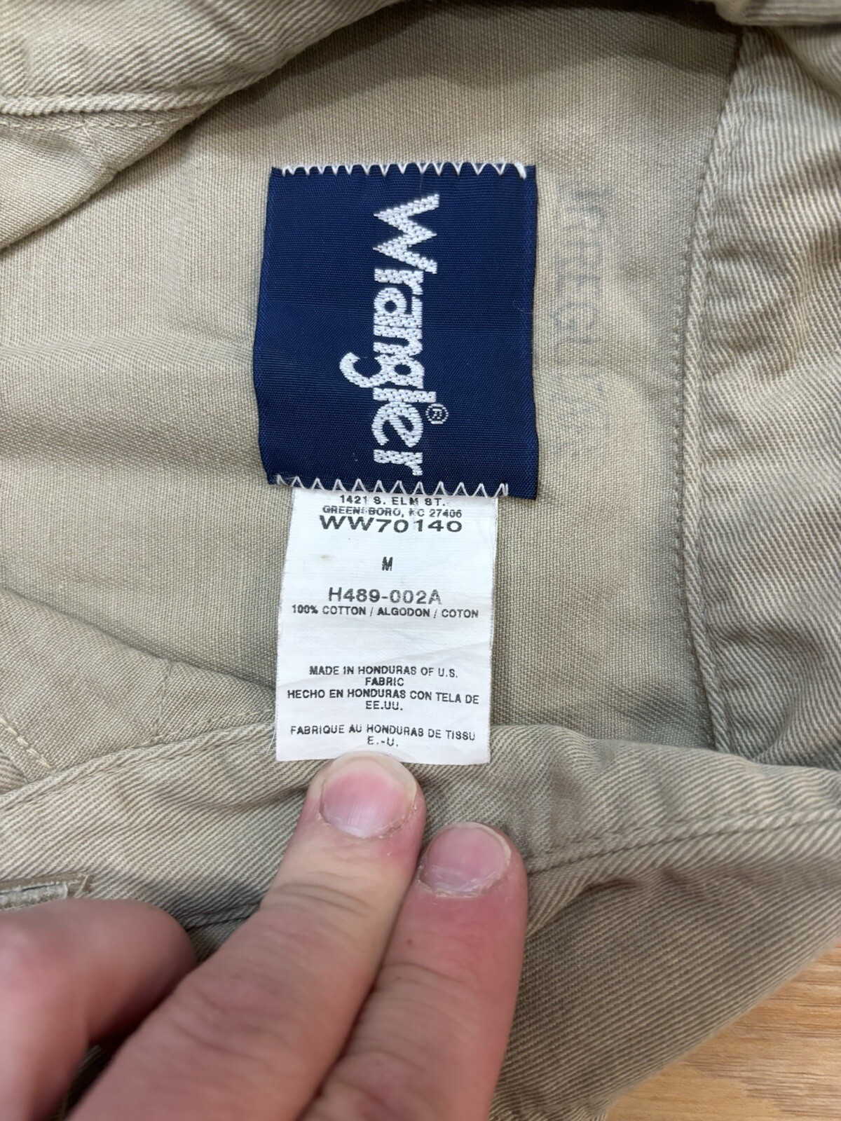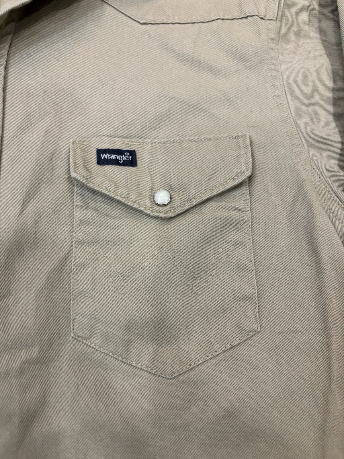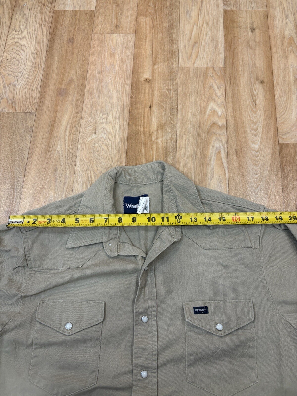 Vintage 90s Wrangler Canvas Pearl Snap Western Shirt Beige Cowboy MD B46