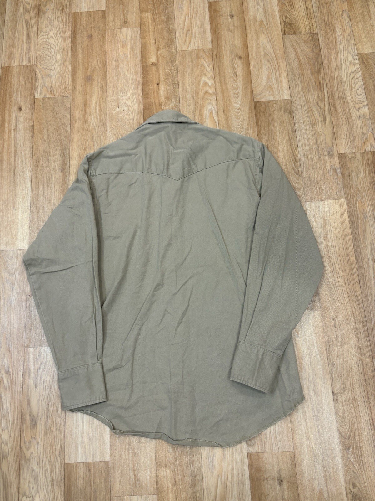 как выглядит Vintage 90s Wrangler Canvas Pearl Snap Western Shirt Beige Cowboy MD B46 фото