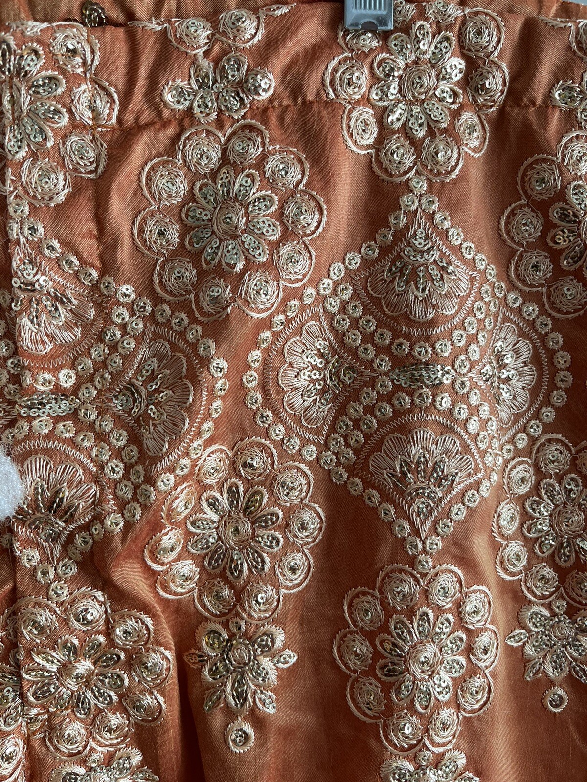 Indian Pakistani Top Pant Formal Wear Orange Gold Sequins Embroidered Floral EUC