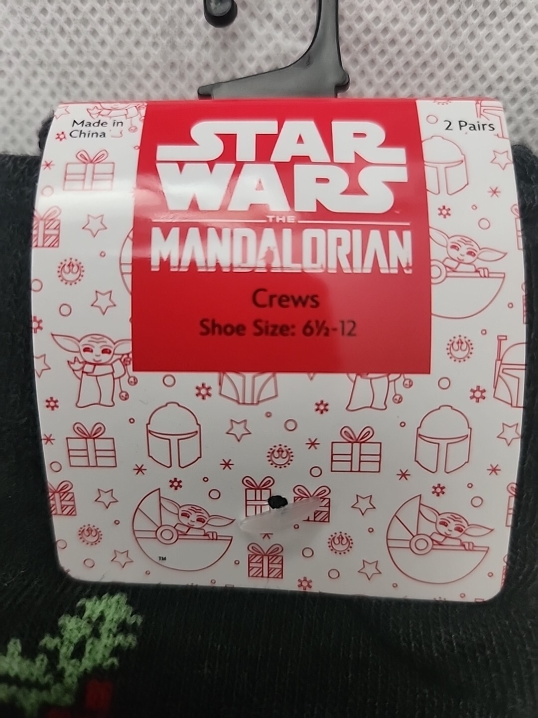 как выглядит STAR WARS Mandalorian Christmas Crew Socks NWT 2 Pack Grogu Yoda Red and Gray фото