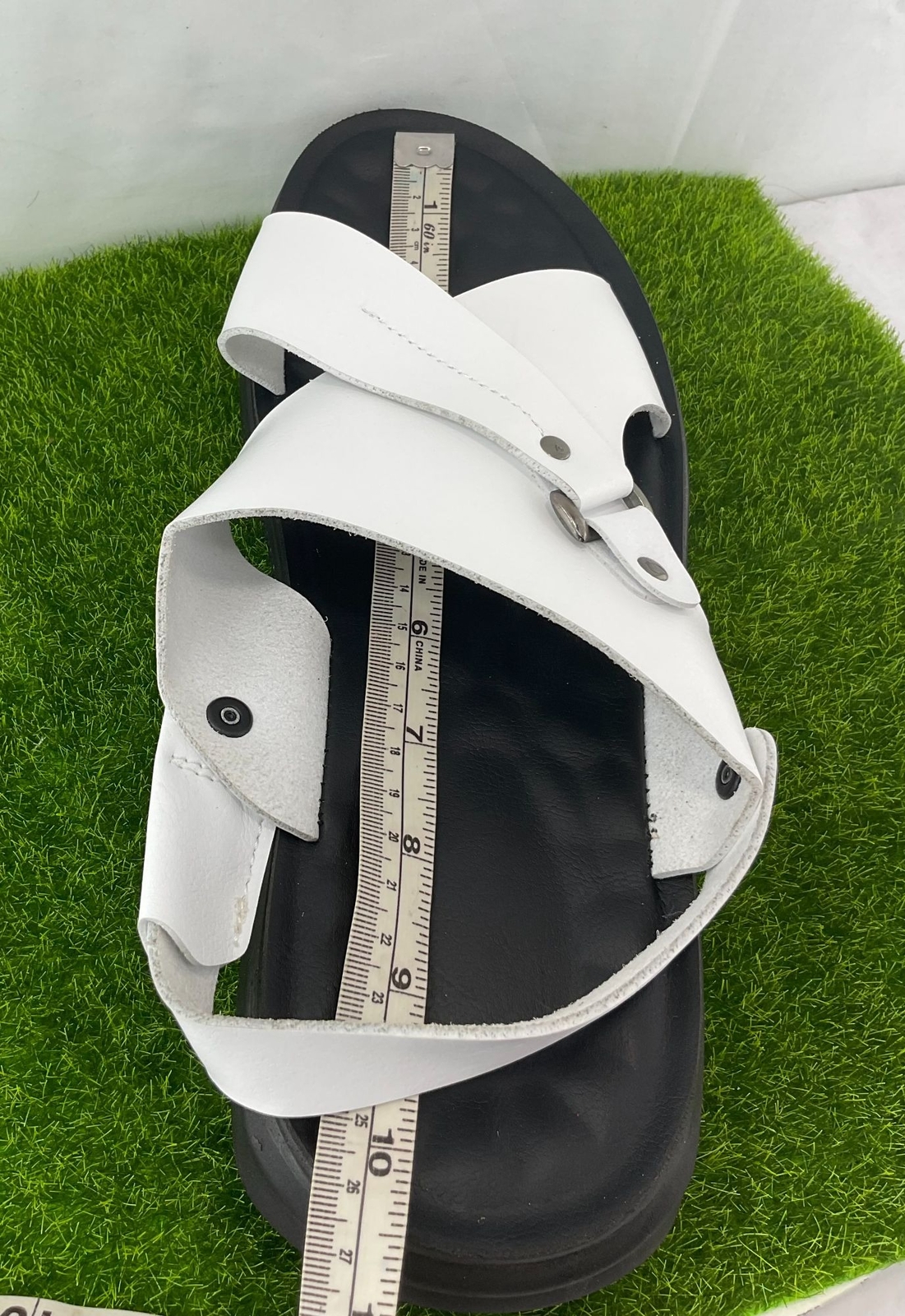 New White Leather Strap Sandals With Black Sole Ankle Strap For Men Size 8