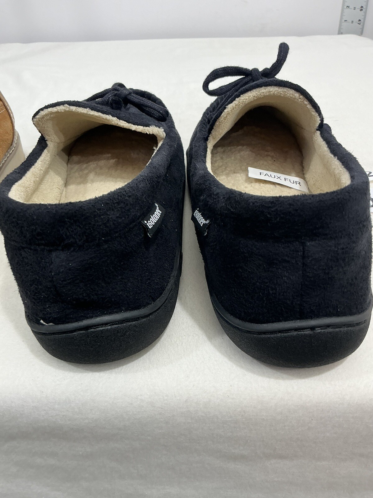 как выглядит Men s Isotoner Arch Support Toe Rest Black Suede Lined Slipper Size 11-12 фото