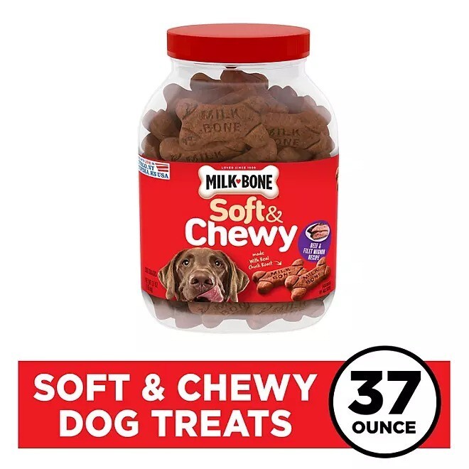 Milk-Bone Soft Chewy Dog Treats, Beef Filet Mignon 37 oz 2 Pack