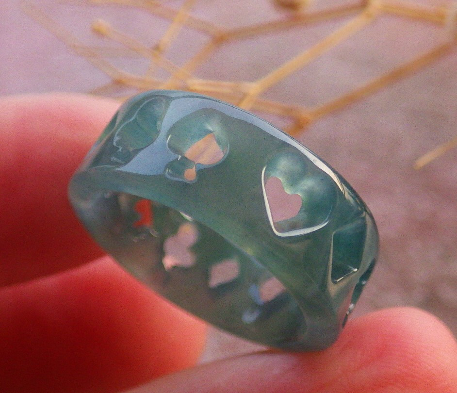 Video Certified Icy Green Natural A JADE Jadeite Heart RING USA. 6.75 689227