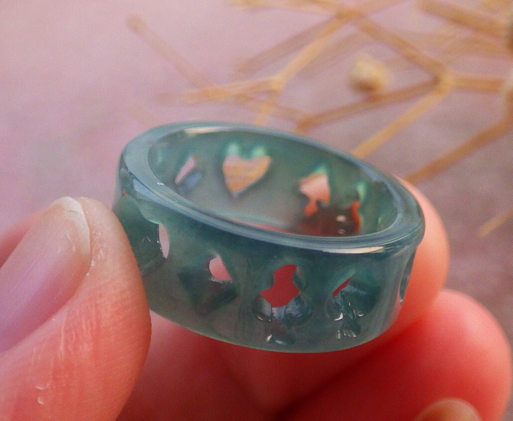 как выглядит Video Certified Icy Green Natural A JADE Jadeite Heart RING USA. 6.75  689227 фото