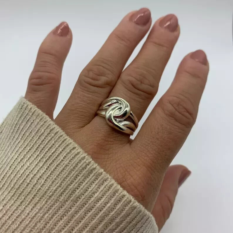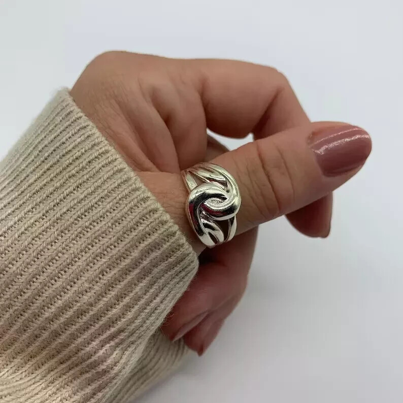 как выглядит Knot Thumb 925 Sterling Silver Wide Band Statement Ring Handmade Ring All size фото