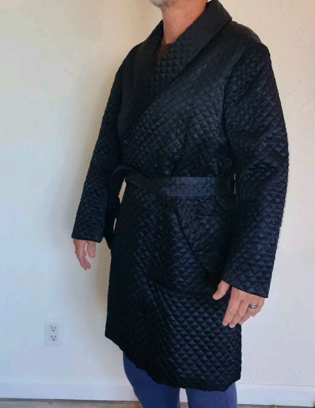 как выглядит Mens Vintage 60s Jaeger Satin English Smoking Jacket Robe London Tricel фото
