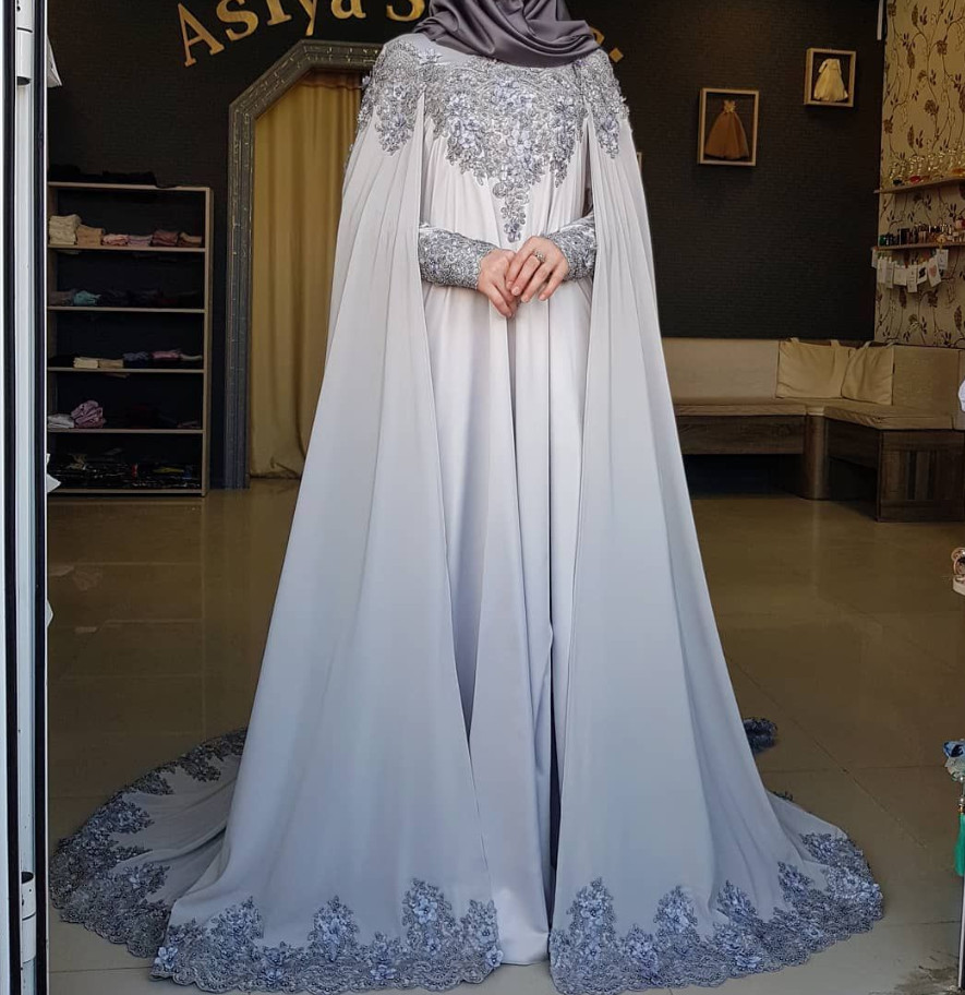как выглядит Light Blue Muslim Wedding Dresses with Cape Lace Appliques A Line Bridal Gowns фото