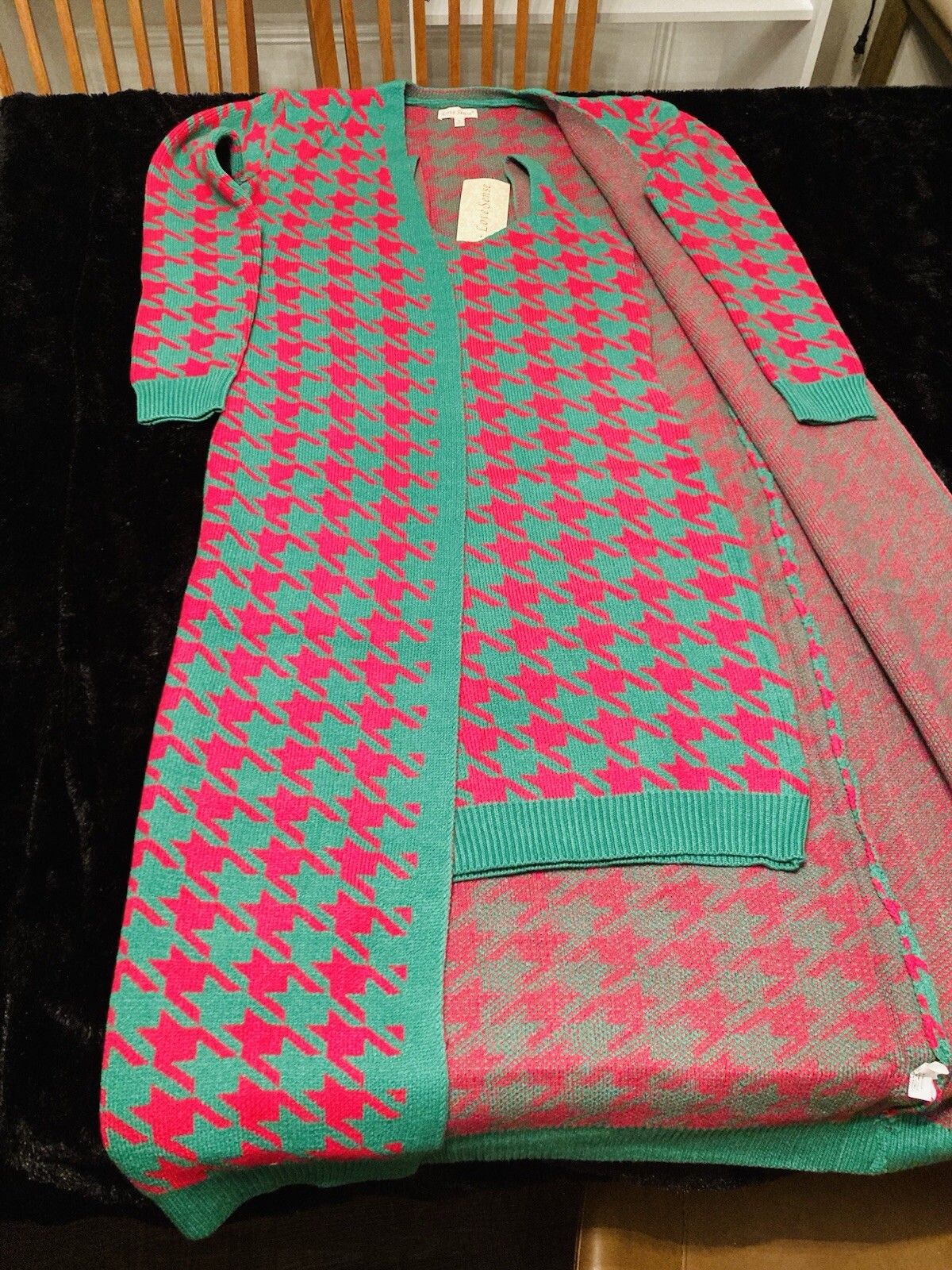 Two-Piece Contrast Long Sleeve Cardigan and Dress Set - Large