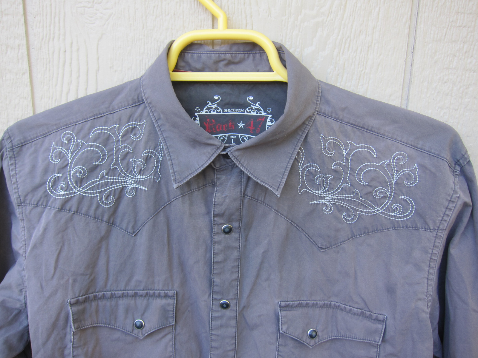 Wrangler Rock 47 Western Rockabilly Shirt Pearl Snaps Embroidered Mens Large