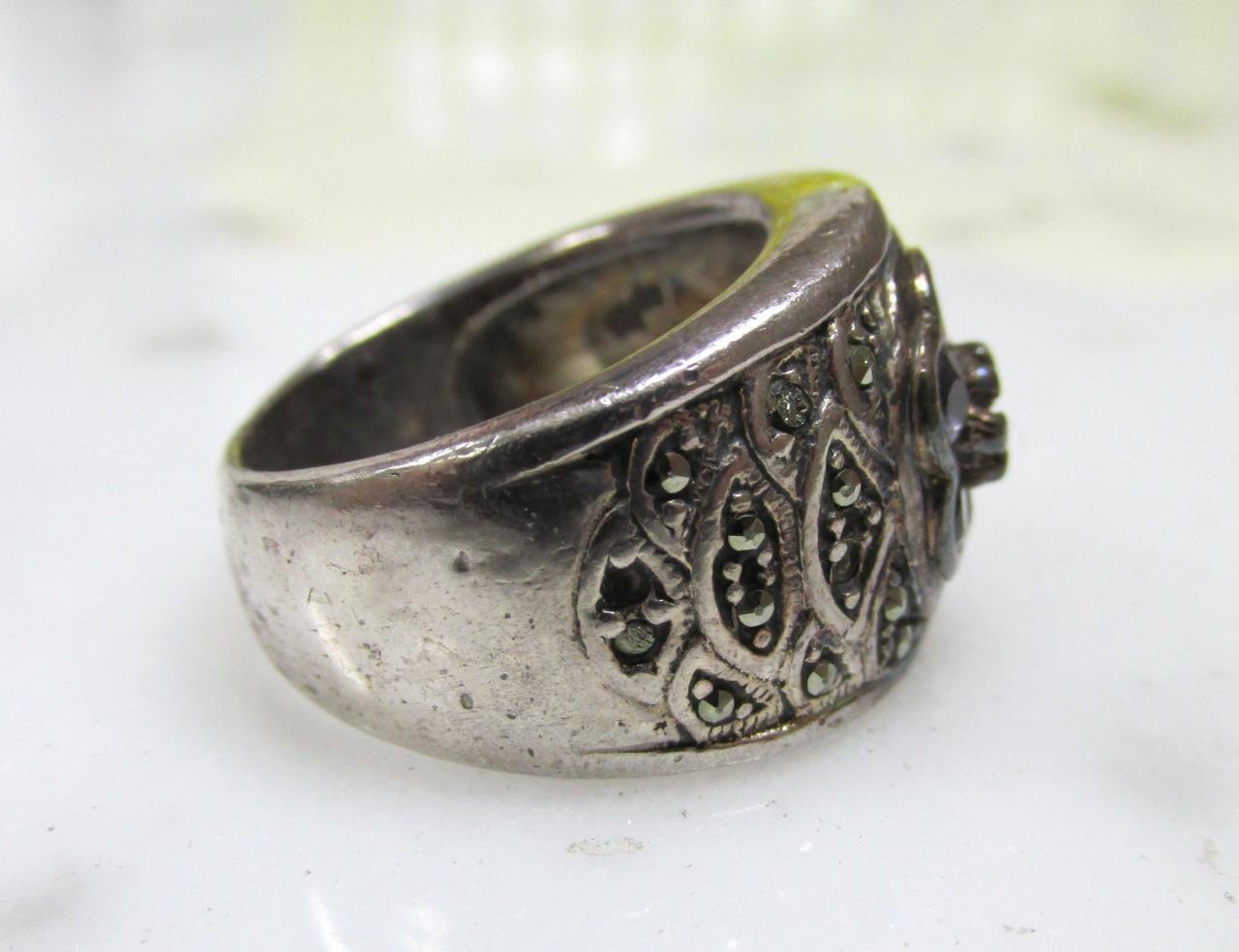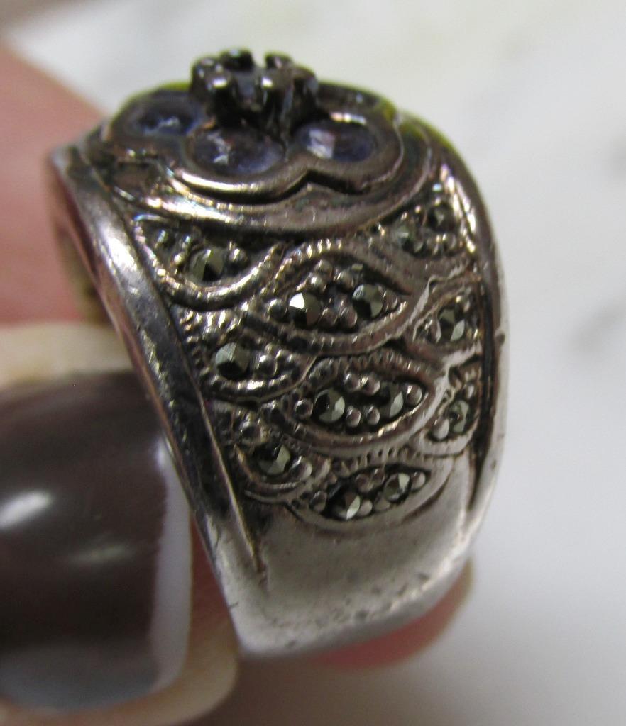 как выглядит Sterling Silver Blue Stone Marcasite Ring; AS IS 9.8g 12-C738 фото