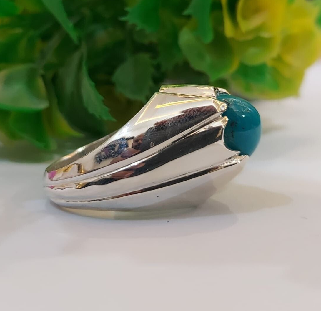 как выглядит Natural Hussaini Feroza Stone Ring Nishapuri Turquoise Ring Silver Unique Design фото