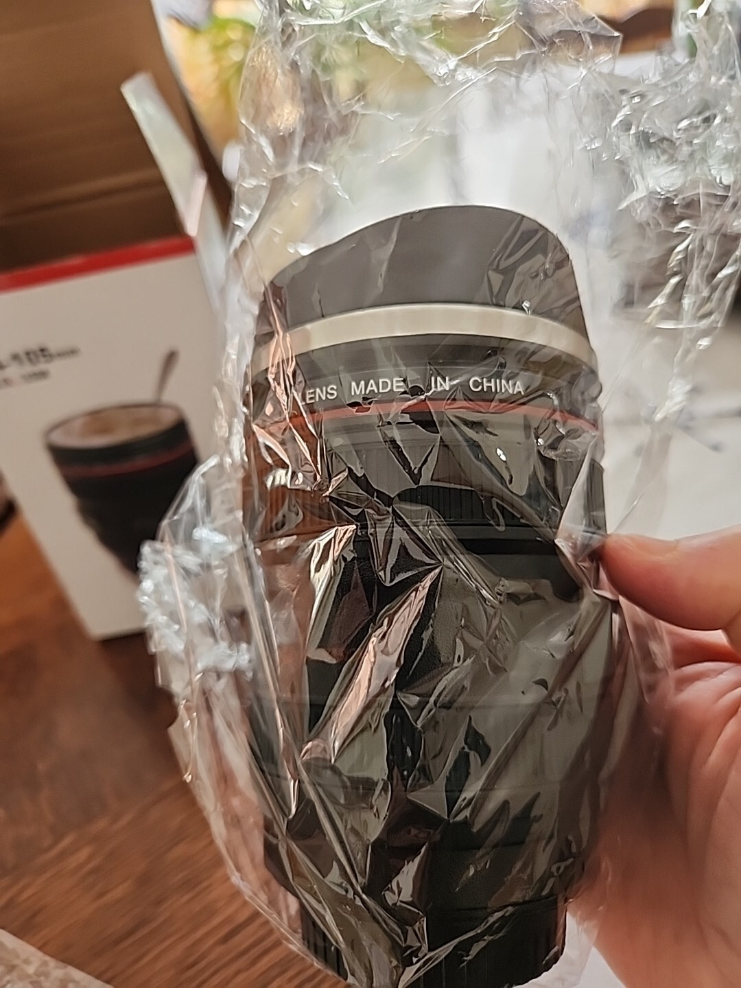 NEW Camera Lens Travel Cup Like Canon EF 24-105mm Photographer Mug w/Lid Spoon