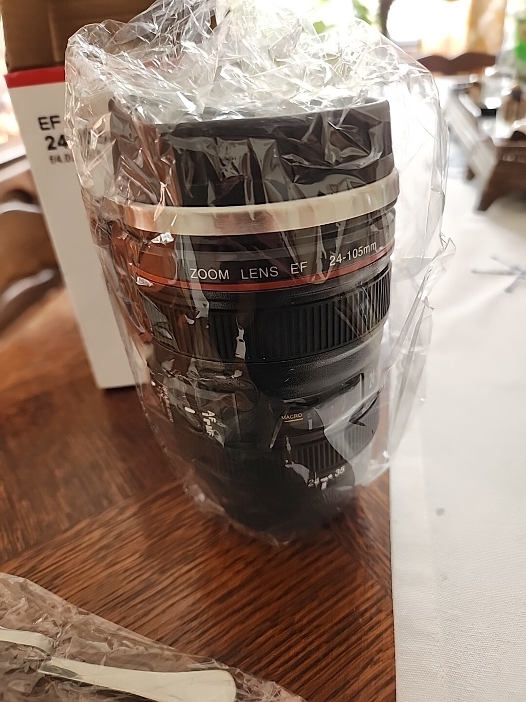 как выглядит NEW Camera Lens Travel Cup Like Canon EF 24-105mm Photographer Mug w/Lid Spoon фото