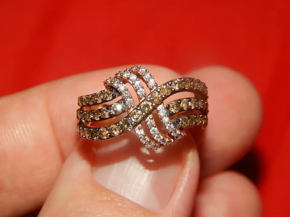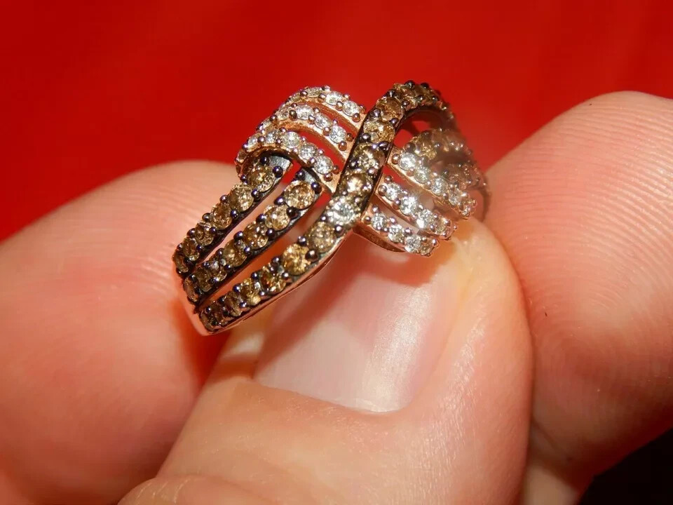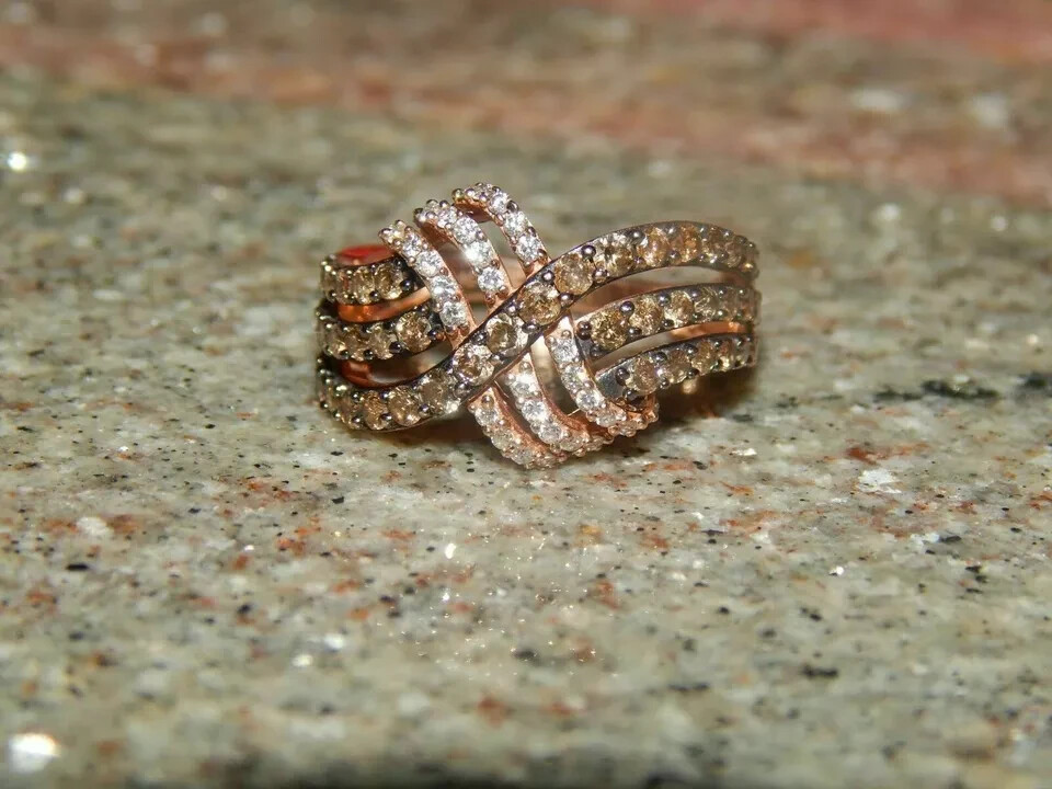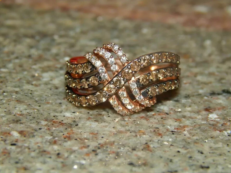 как выглядит 2Ct Simulated White Chocolate Diamond Engagement Ring Rose Gold Plated Silver фото