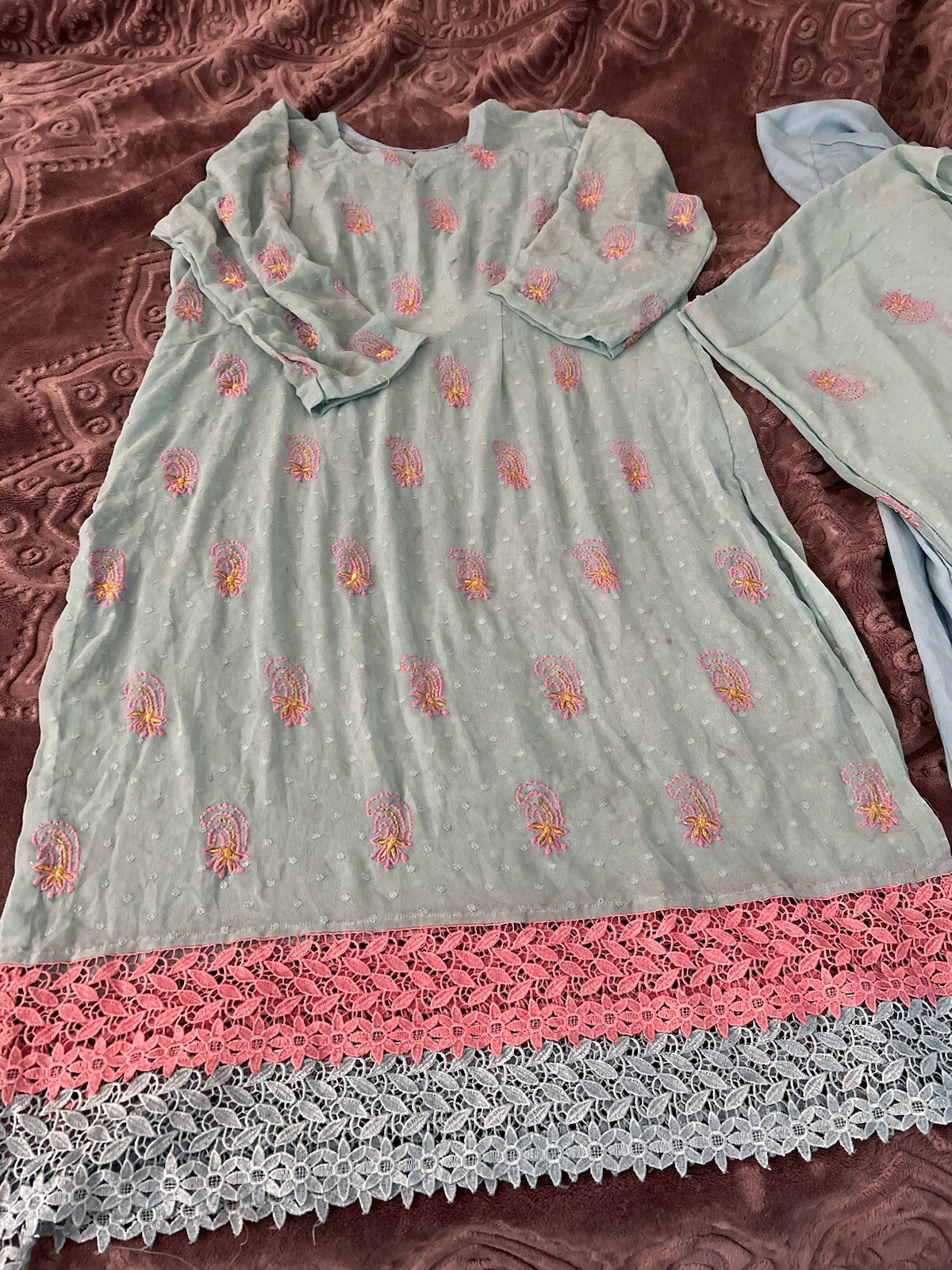 Pakistani Traditional Women Size XL Embroidery Shalwar Kameez Dupatta 3 Pieces