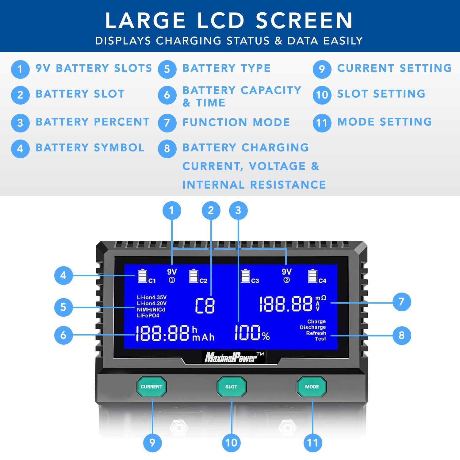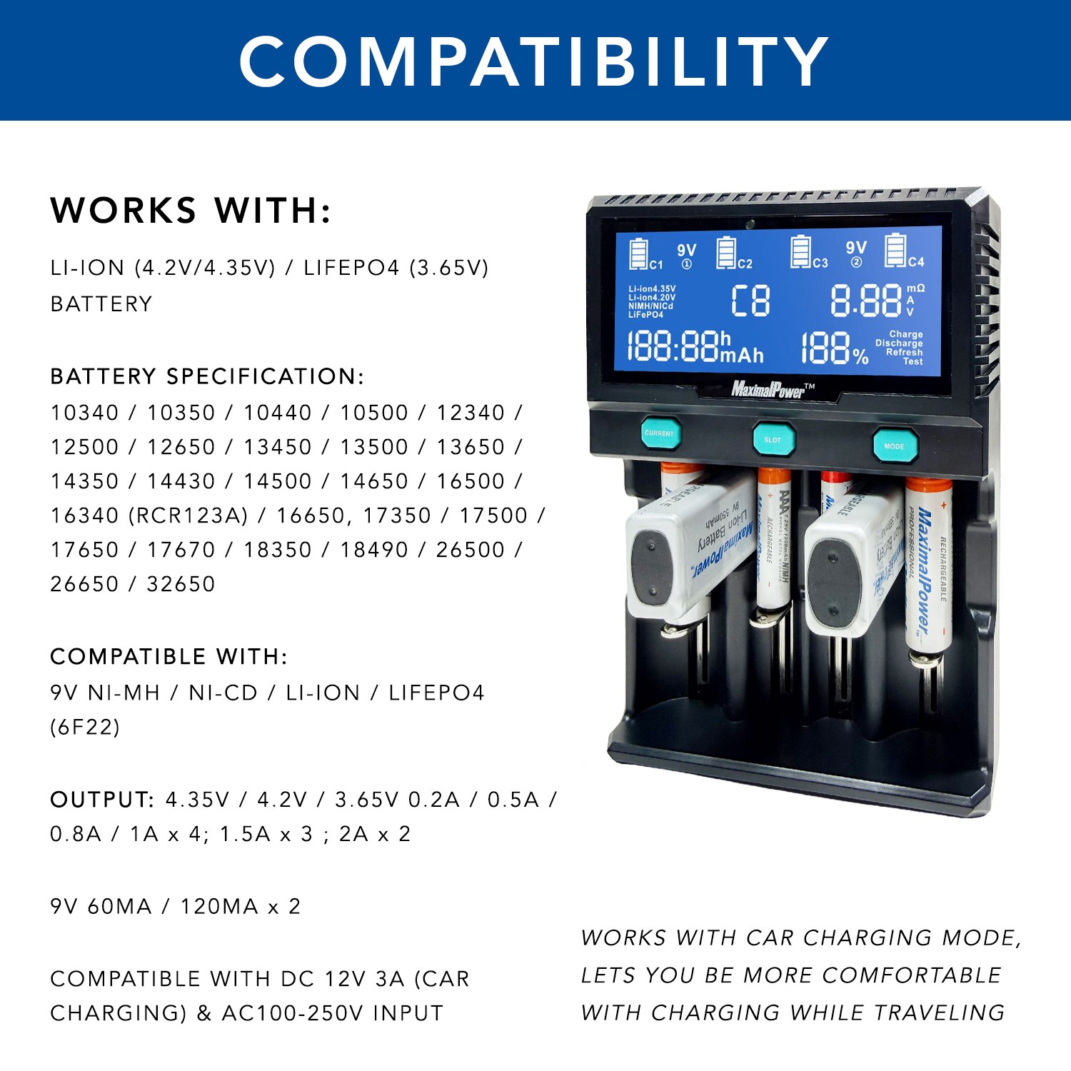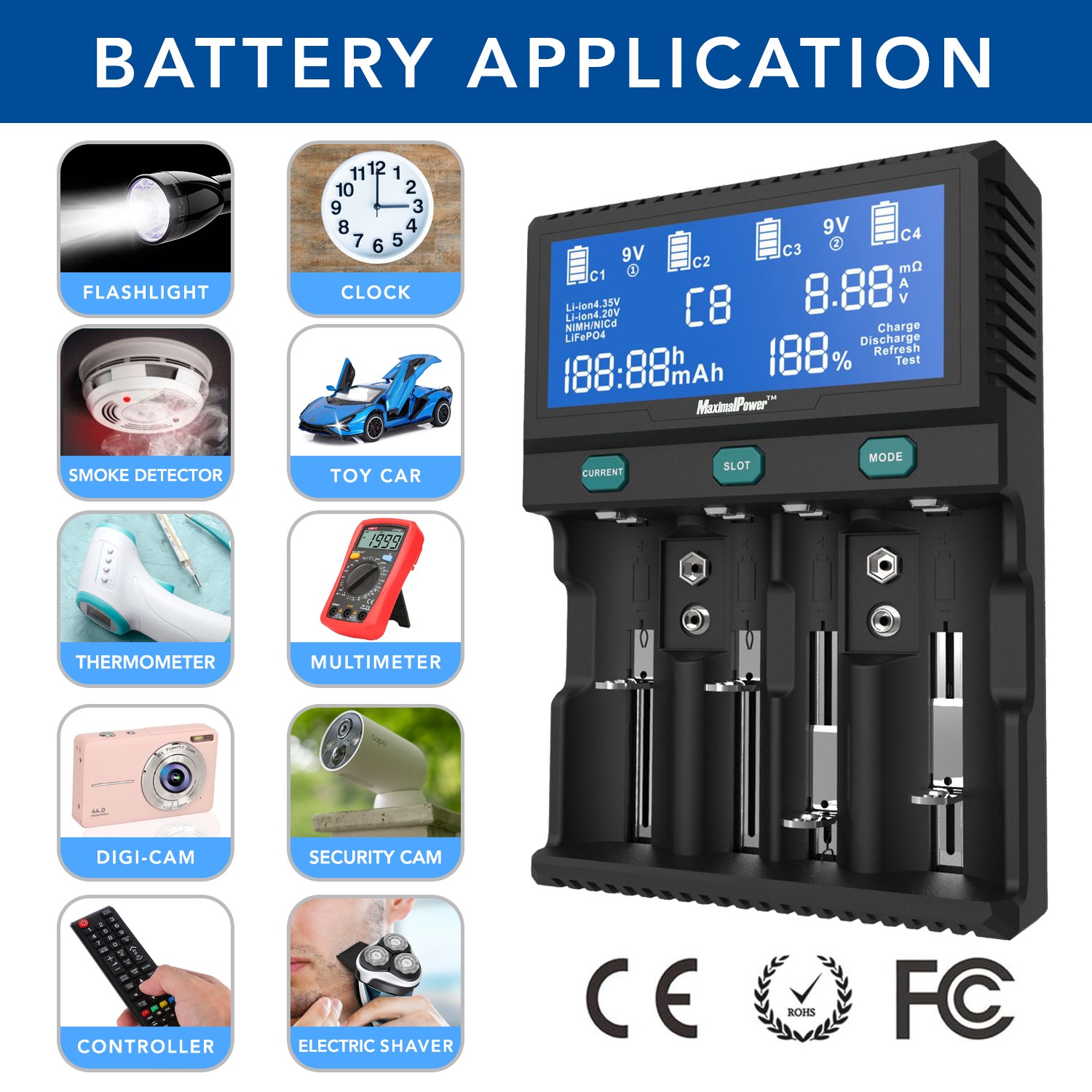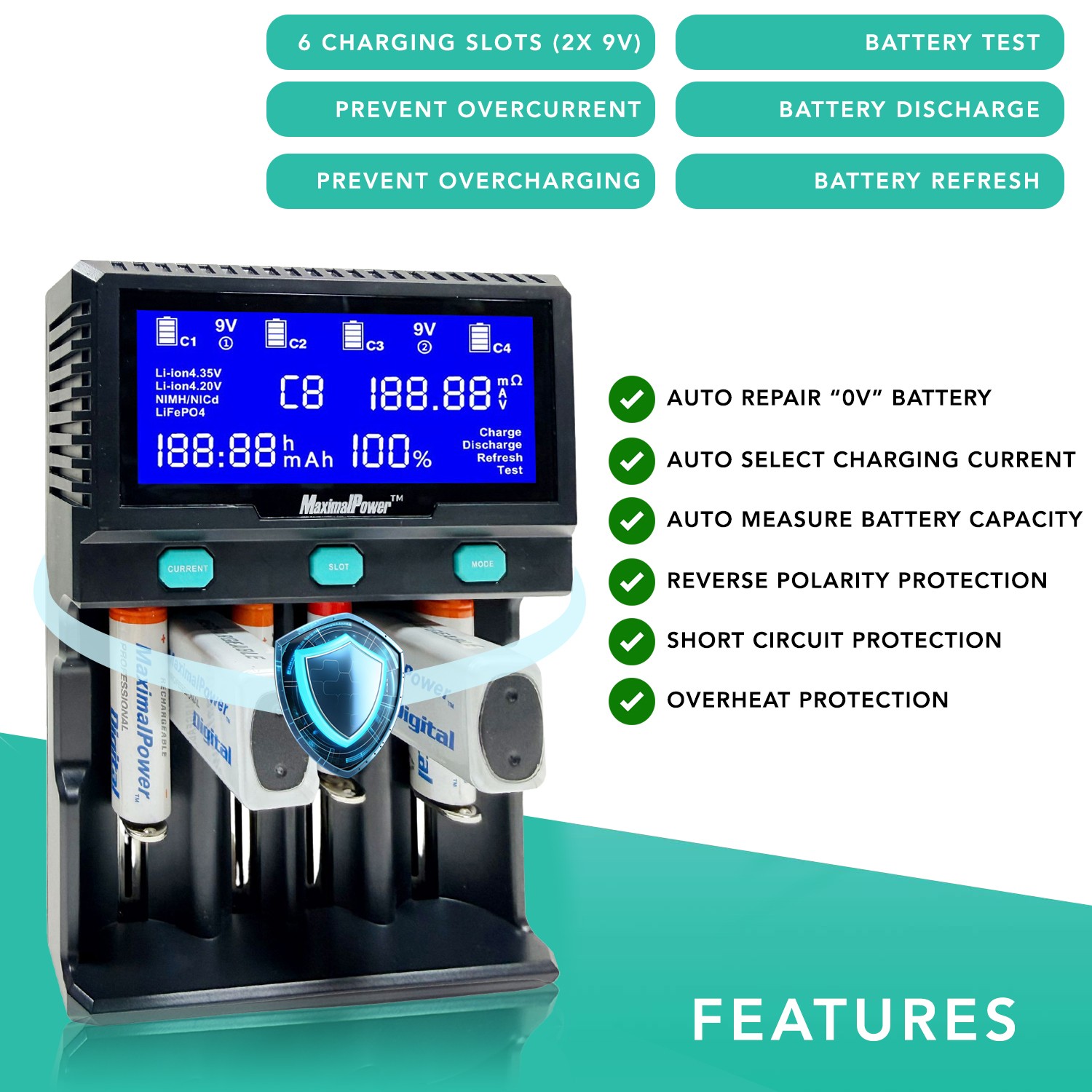 MaximalPower Smart Battery Charger for Rechargeable 9V AA AAA C D 26650 Battery