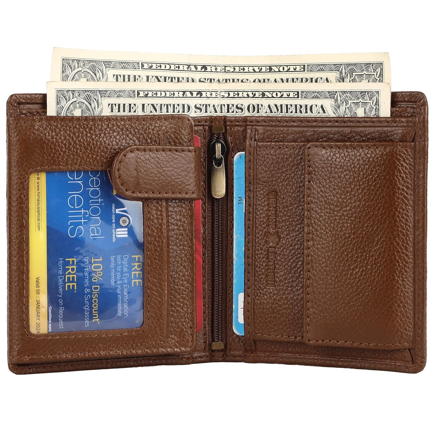 как выглядит Brand New Authentic RFID Protected Brown BI-Fold Genuine Leather Mens Wallet фото