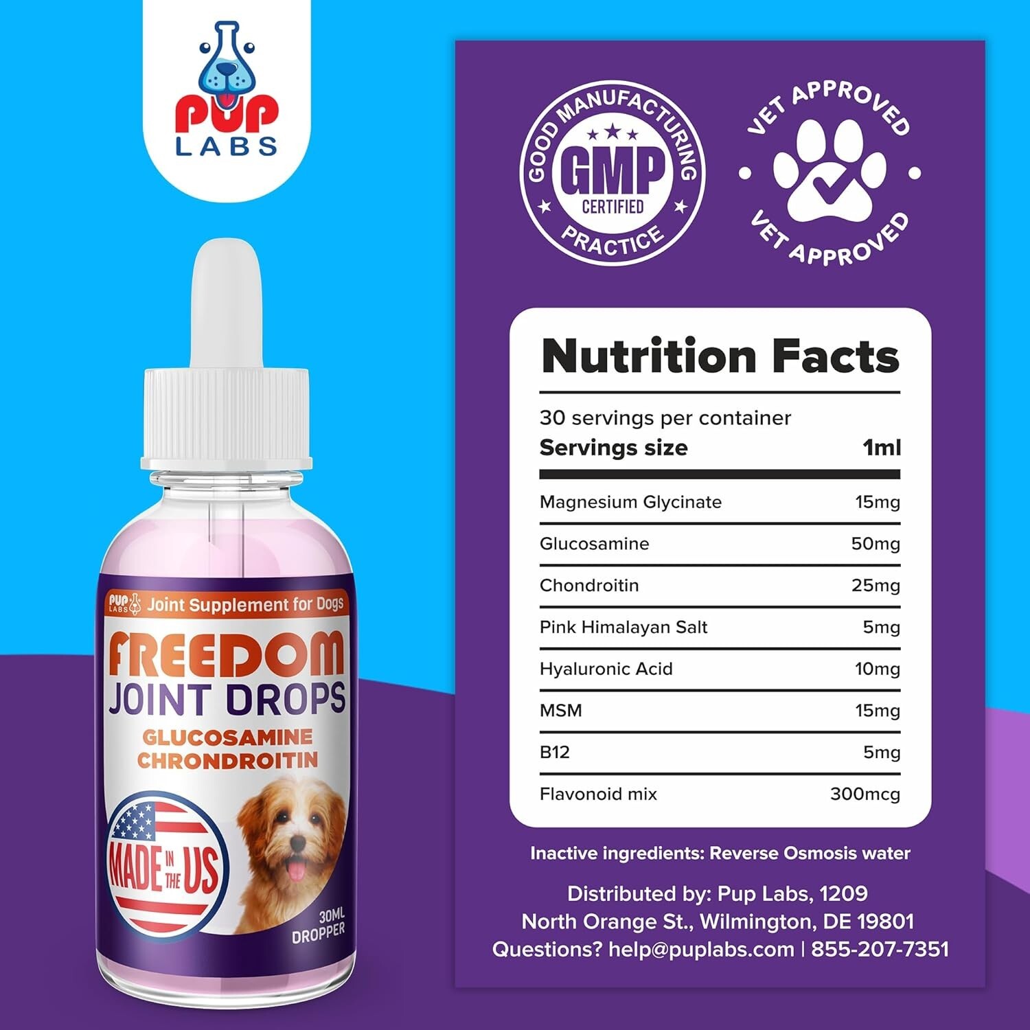Freedom Joint Drops for Dogs with Hyaluronic Acid, MSM, Glucosamine Chondroiti