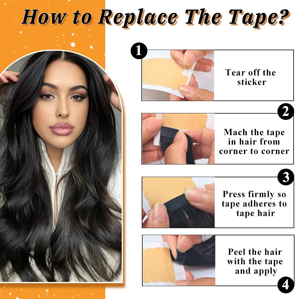 как выглядит Tape in Hair Extensions Human Hair, 14 Inch Human Hair Tape in Extensions 20P... фото