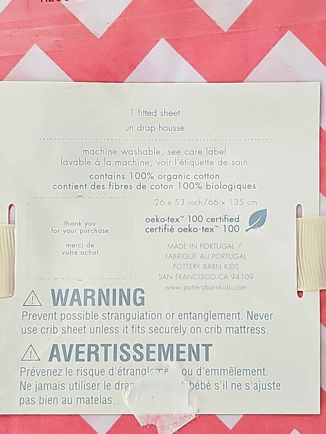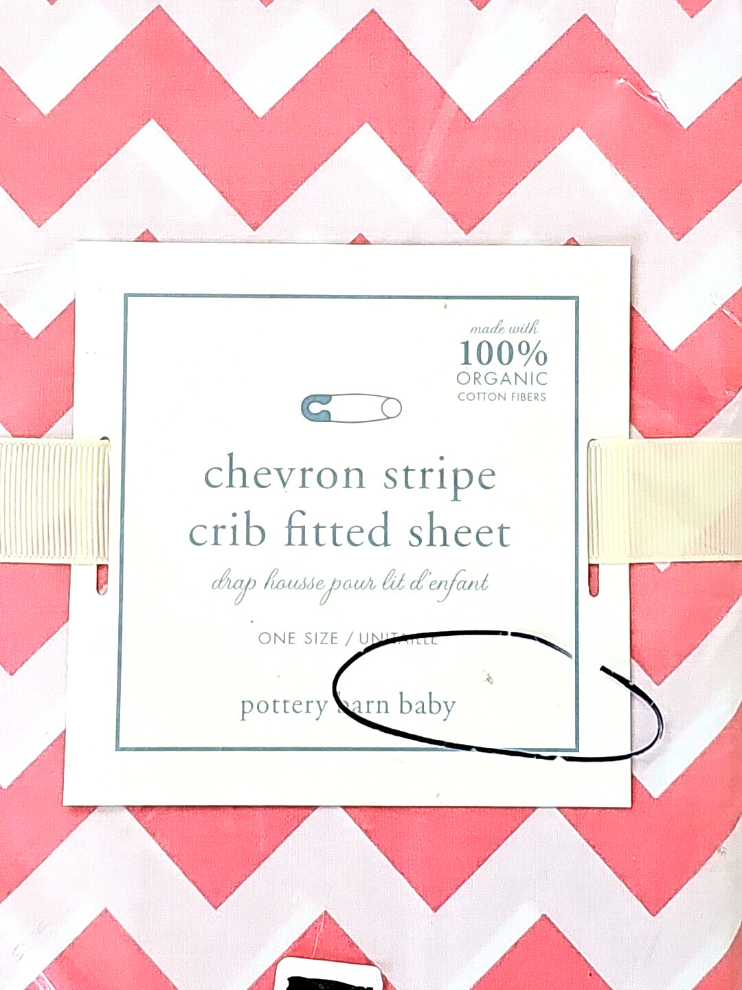 Pottery Barn Baby Chevron Stripe Fitted Crib Sheet Pink White NEW Organic Cotton