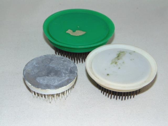 • 3 Vintage Graduated Zinc/Plastic FLOWER FROGS, Sharp Metal Spikes