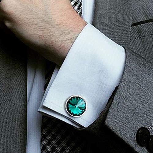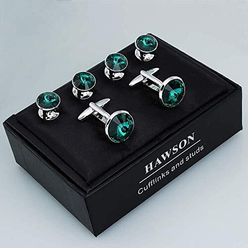 Cufflinks for Men with 4/6 pcs Shirt Studs Set, Emerald 2 cufflinks 4 studs
