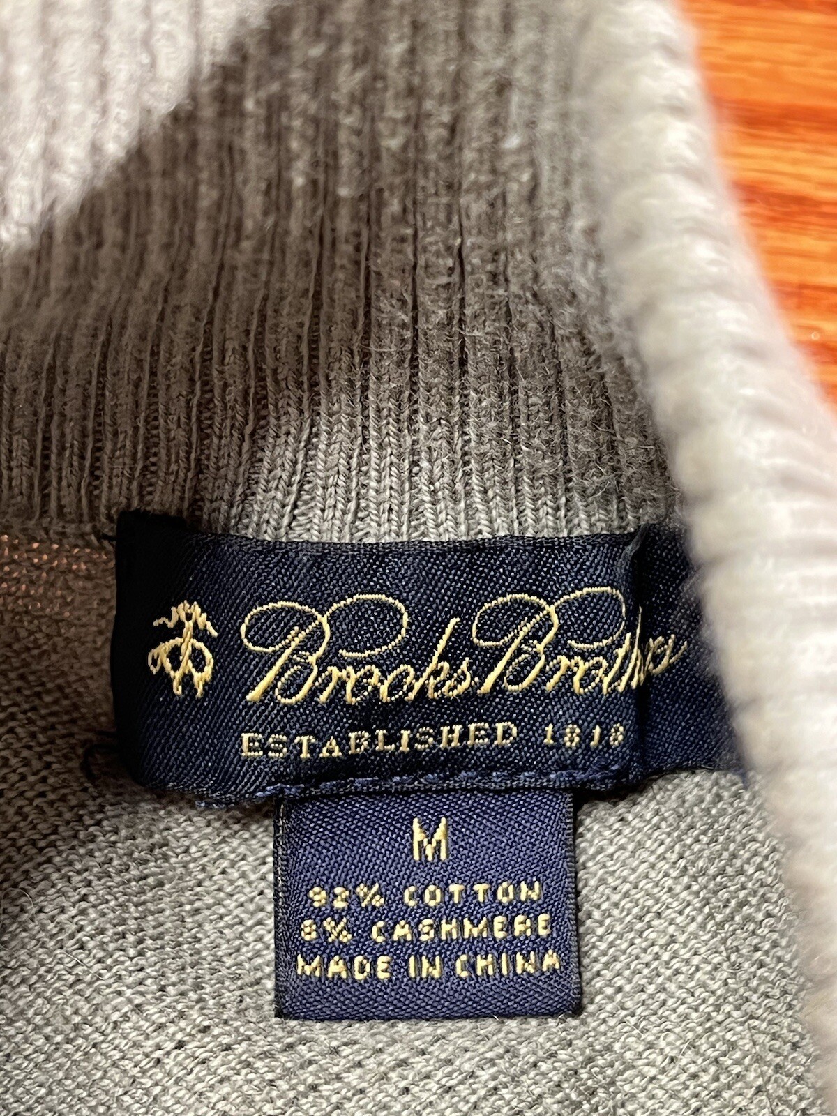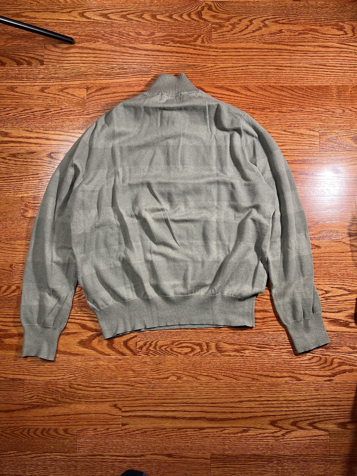 как выглядит Brooks Brothers Sweater Mens 1/4 Zip Medium Green Cotton Cashmere Blend Textured фото