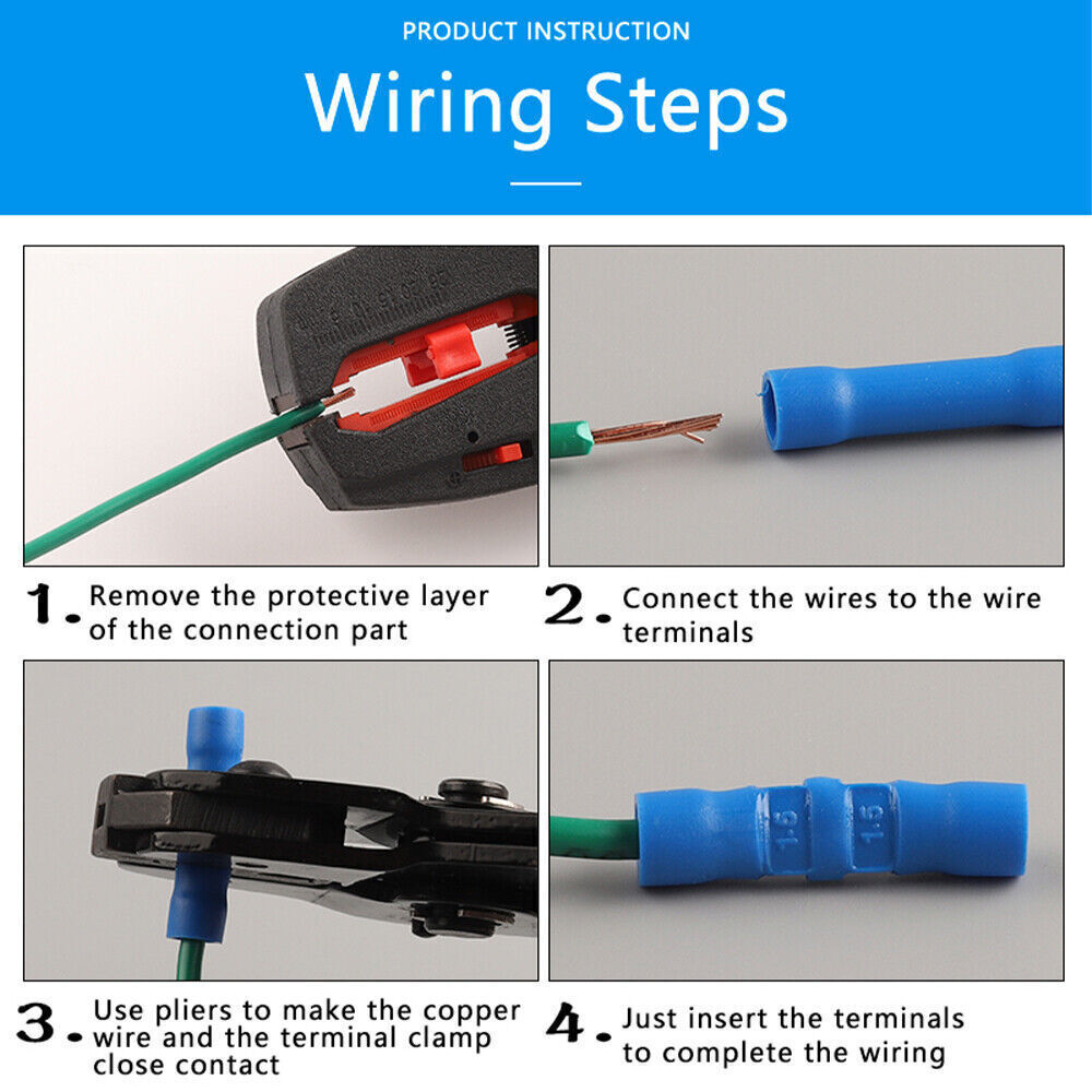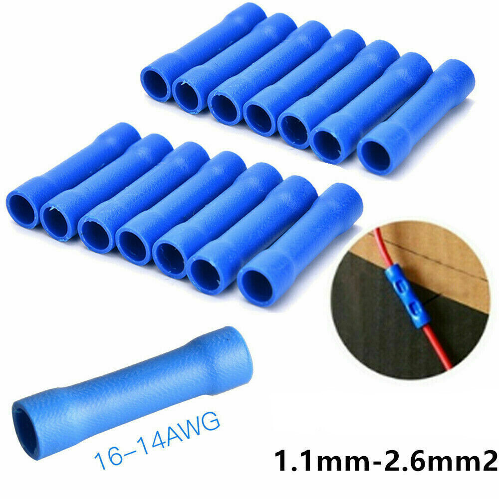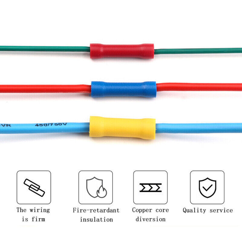 50/100Pcs Butt Connectors Terminals Crimp Fully Insulated PVC Wire Butt Splice