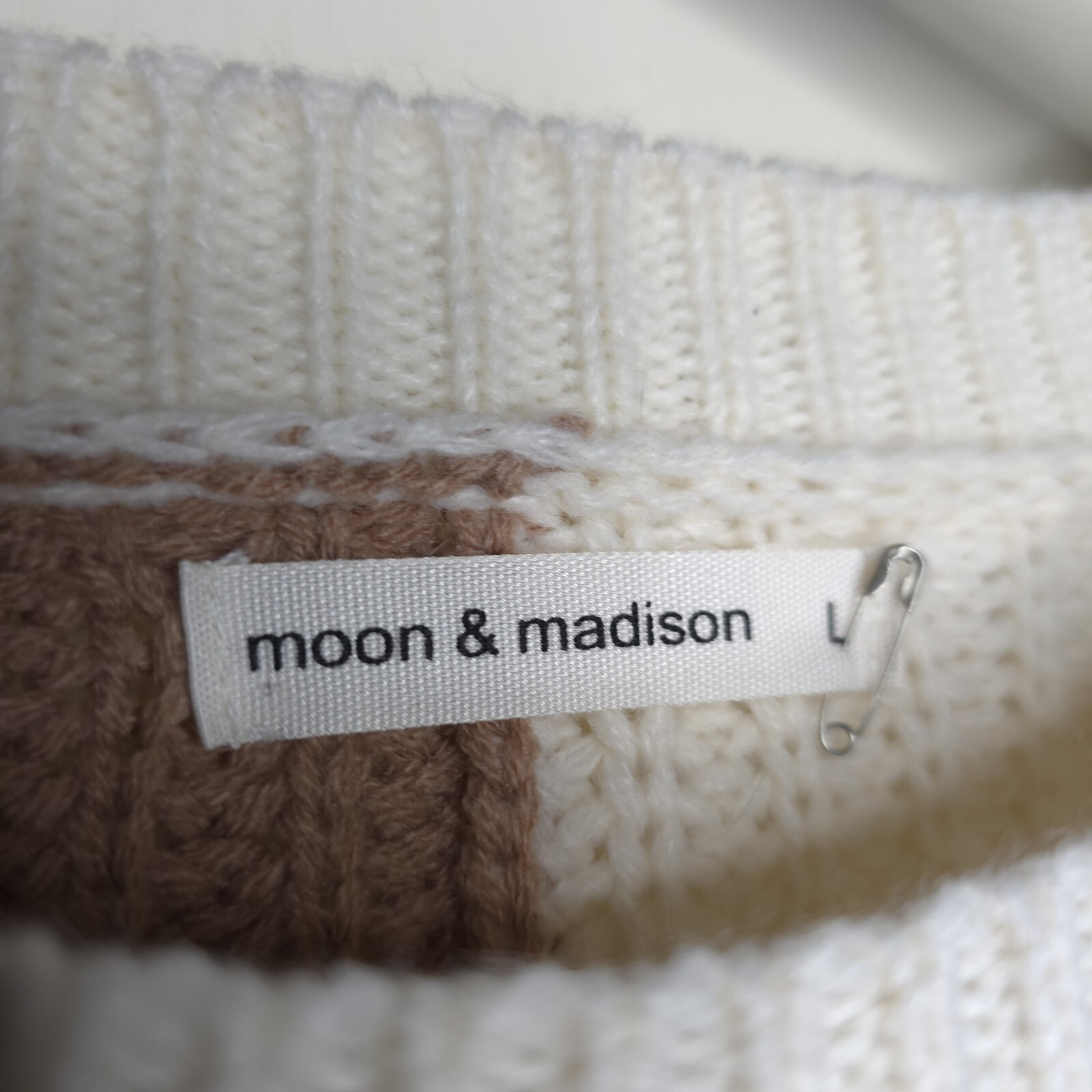 Moon Madison Women's Large Checkered Oversized Sweater Long Sleeve