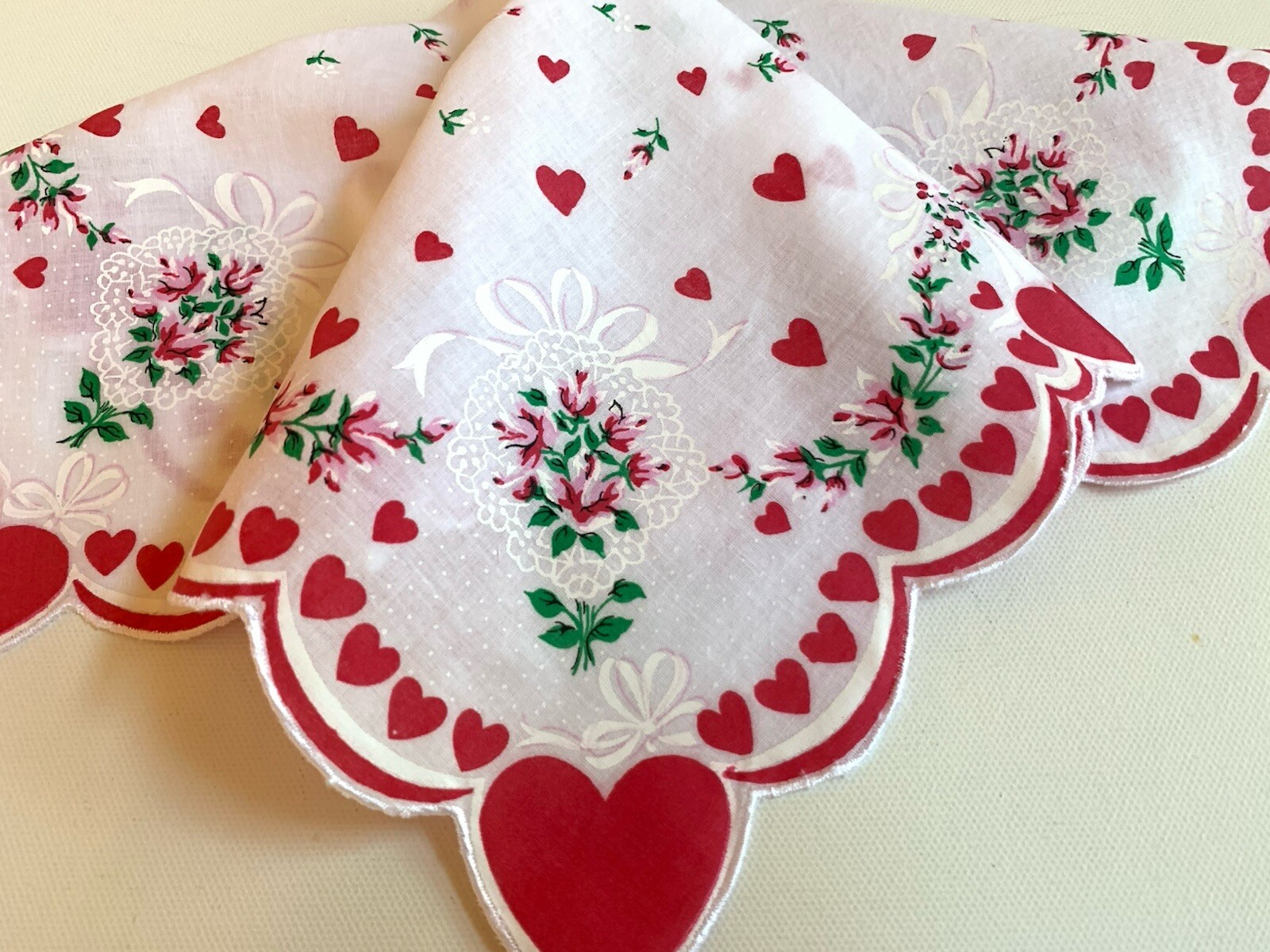 как выглядит Beautiful New Valentine Hearts Hankie Handkerchief Rose Bouquets Ribbons фото