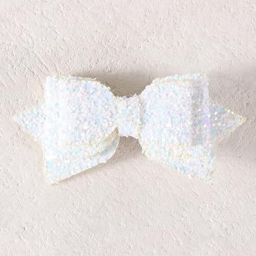 3 Glitter White Hair Bow Clips Sparkly Boutique Alligator Hair Pins Barrettes