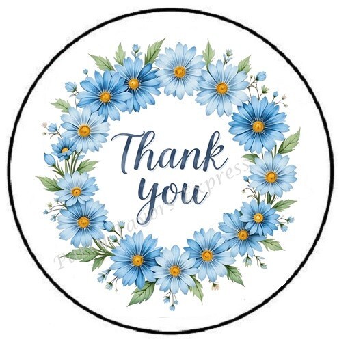 как выглядит THANK YOU BLUE FLORAL WREATH ENVELOPE SEALS LABELS STICKERS PARTY FAVORS фото