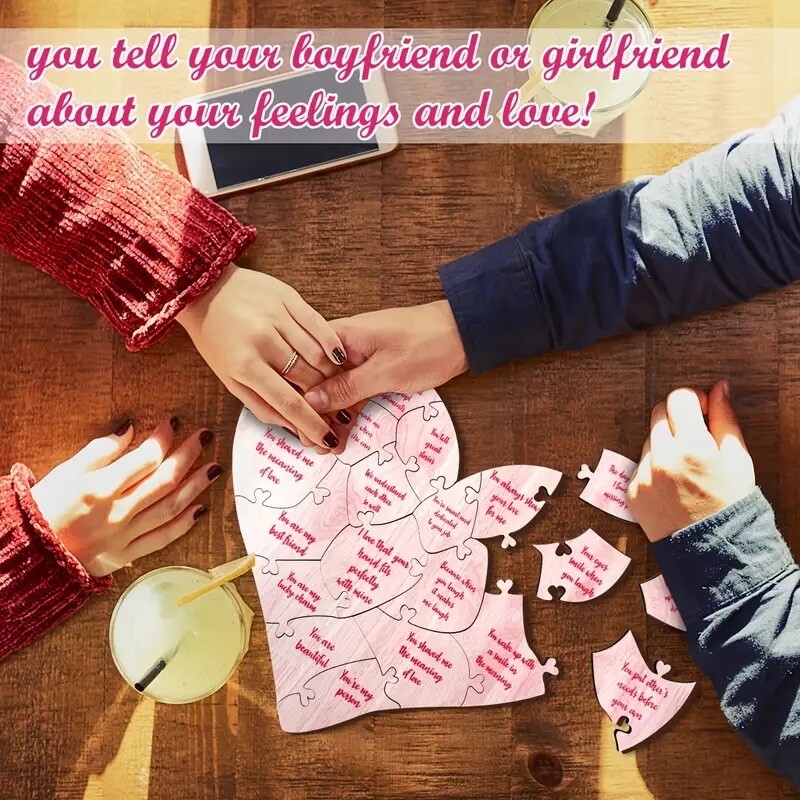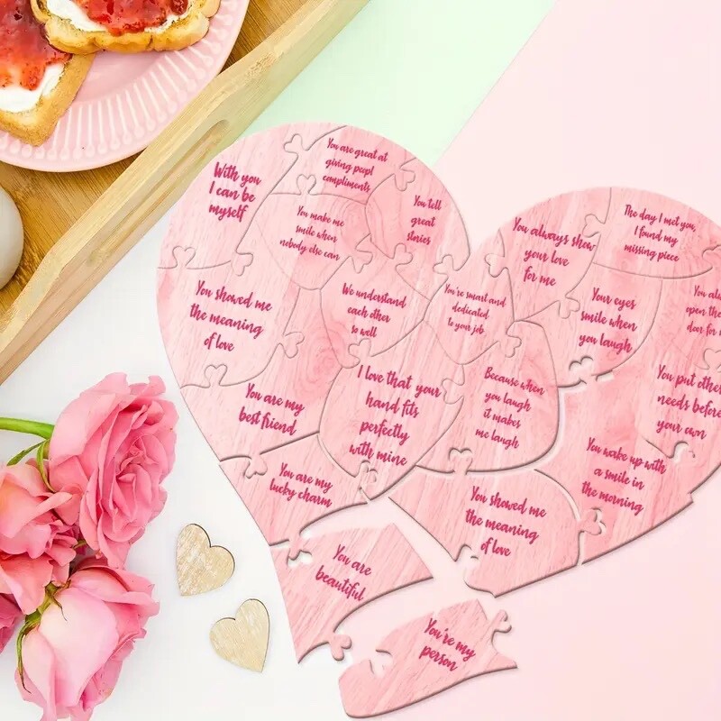 20 Reasons Why I Love You Wooden Heart Puzzle in a gift box gift packaging