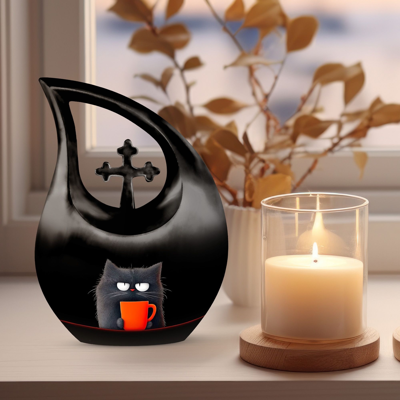 • Cat Human Ashes Large Memorial Burial Urns For Ashes Adult Mother Mom 10 Inch