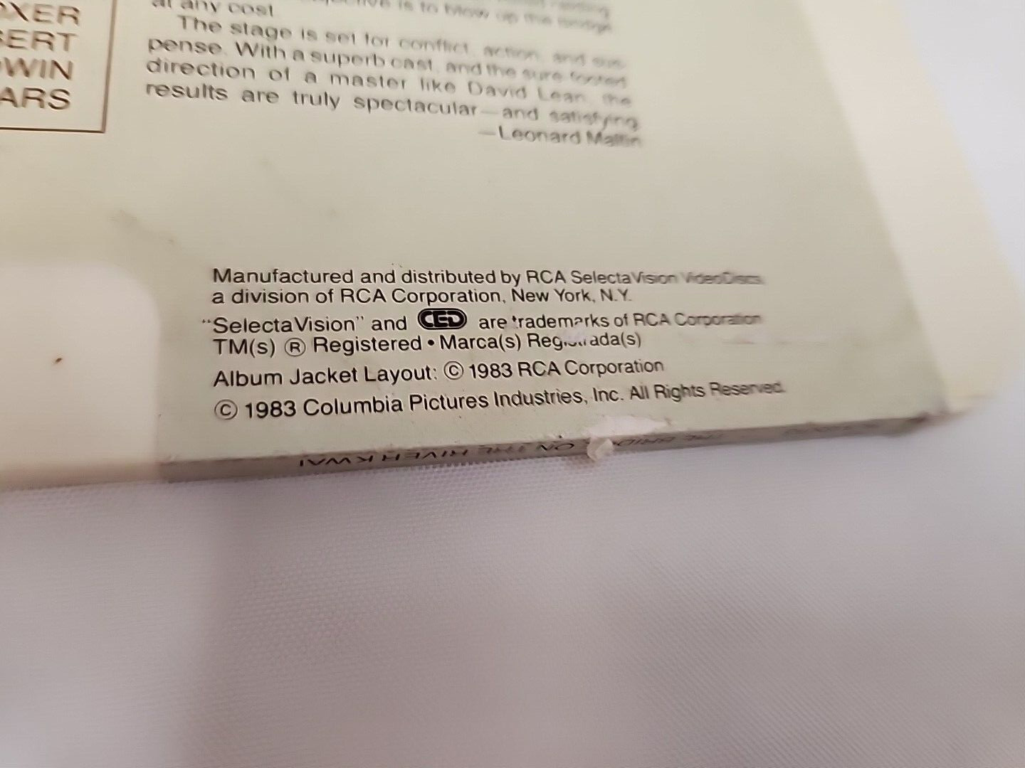 как выглядит The Bridge Over The River Kwai Columbia Pict RCA SelectaVision CED Tested Works фото