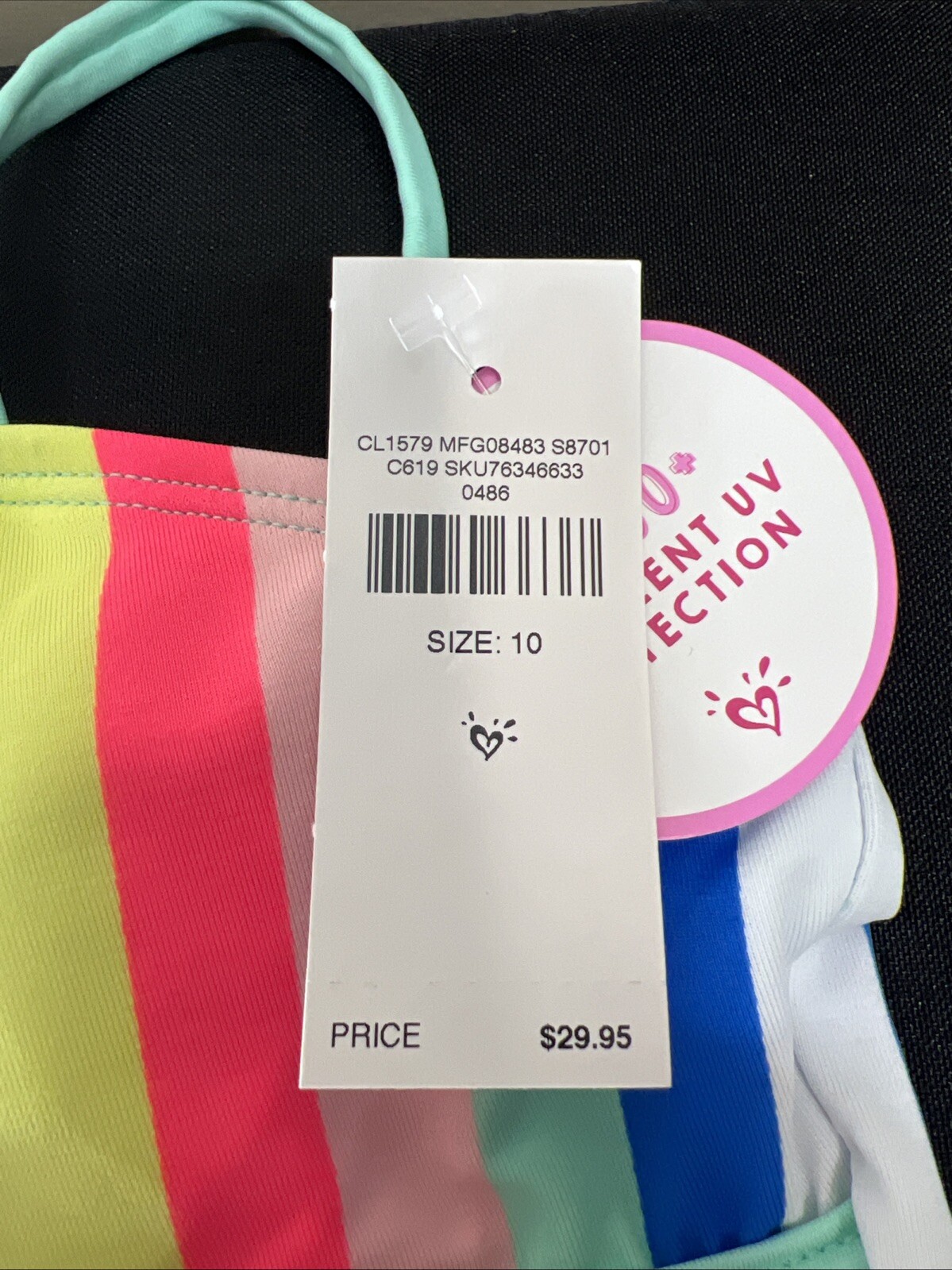 Justice Two Piece Tankini Swimsuit Stripes Asymmetrical Straps Girl's 10 NWT