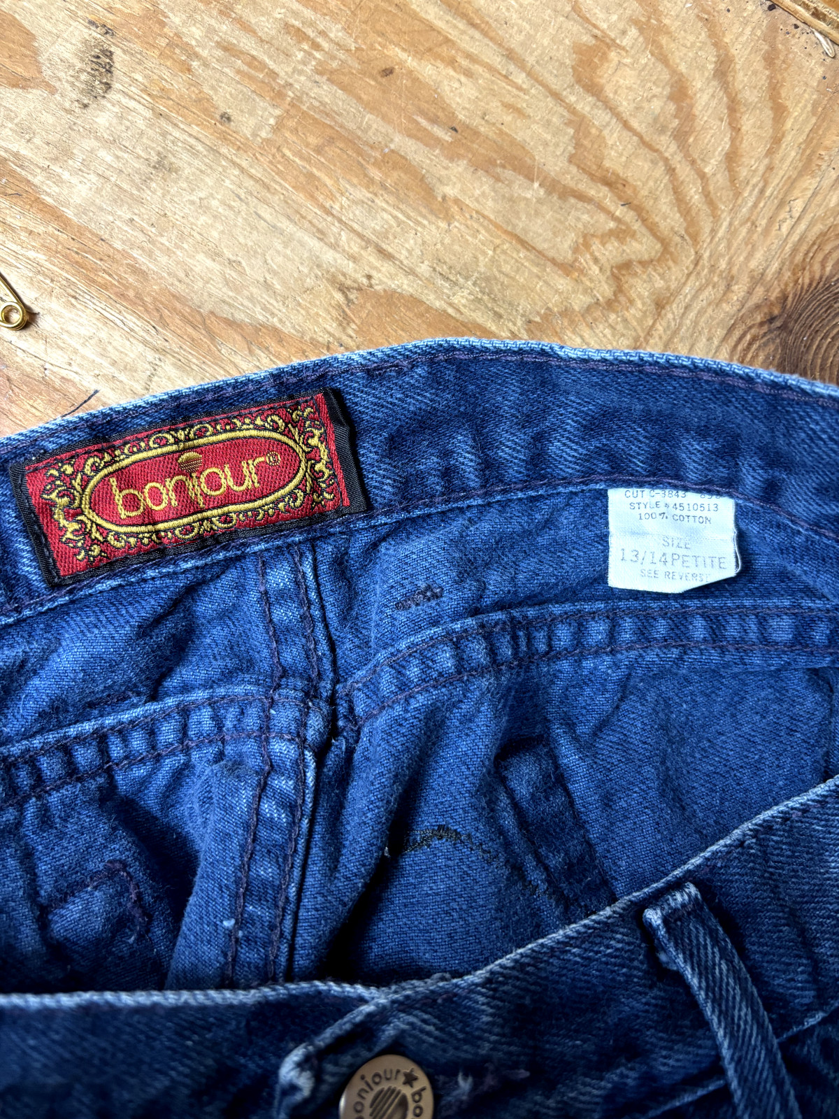 Vintage Bonjour Cutoff Patched Denim Jean Shorts