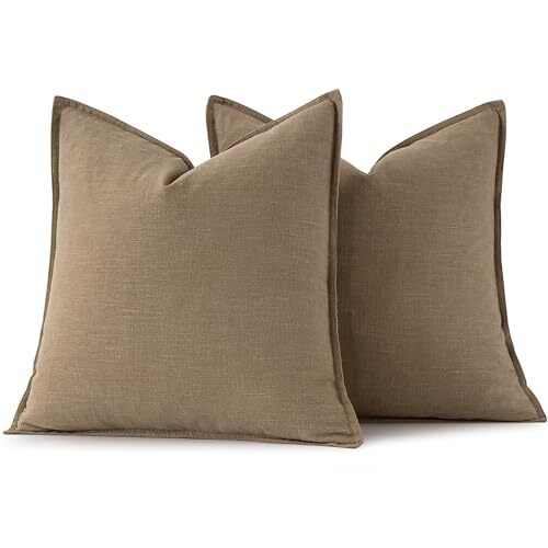 Decorative Linen Pillow Covers 20x20 Inch Boho 20 x 20 Pack of 2 Khaki