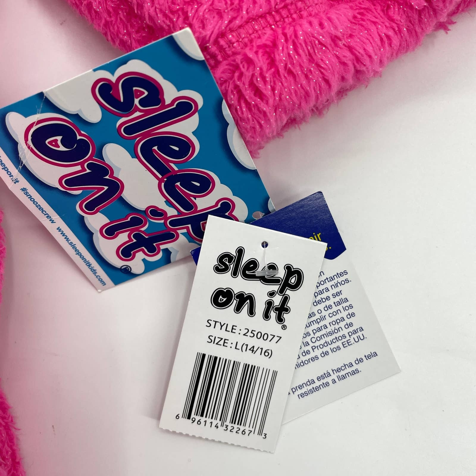 New SLEEP ON IT Sloth Hot Pink Fuzzy Hooded Robe Youth Large 14/16
