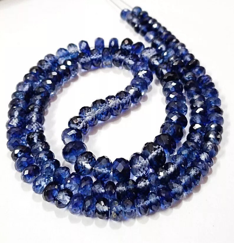 6-8mm Blue Sapphire Faceted Beads, Top Quality Rondelle Gemstone Jewelry 16 Inch