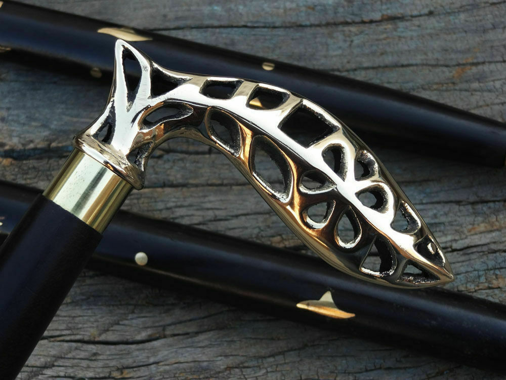 Antique Style Victorian Cane Wooden Walking Stick Vintage Solid Brass Handle
